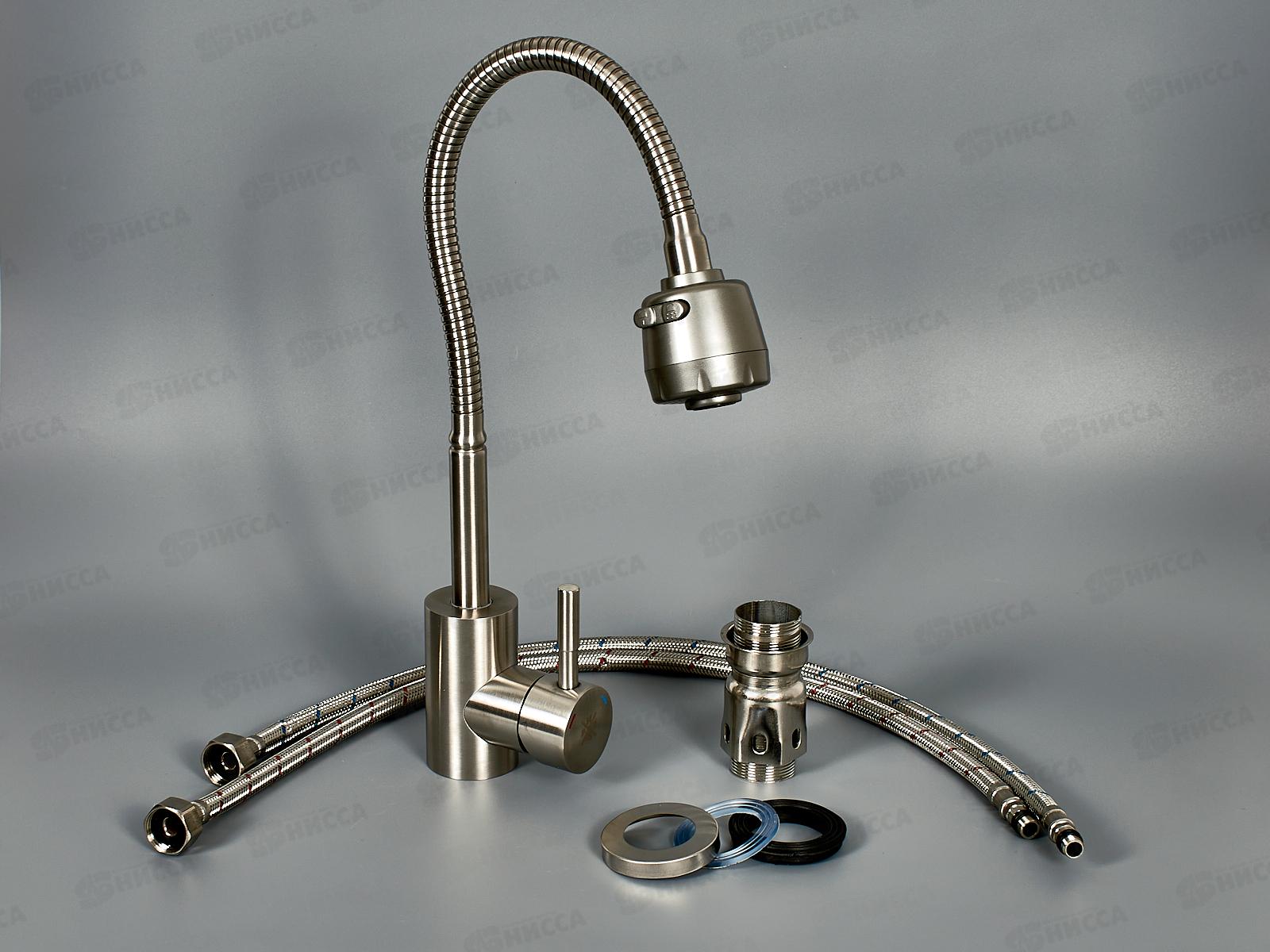 Код:527331; Смеситель для кухни шар., высокий гибкий излив, SUS124-016F