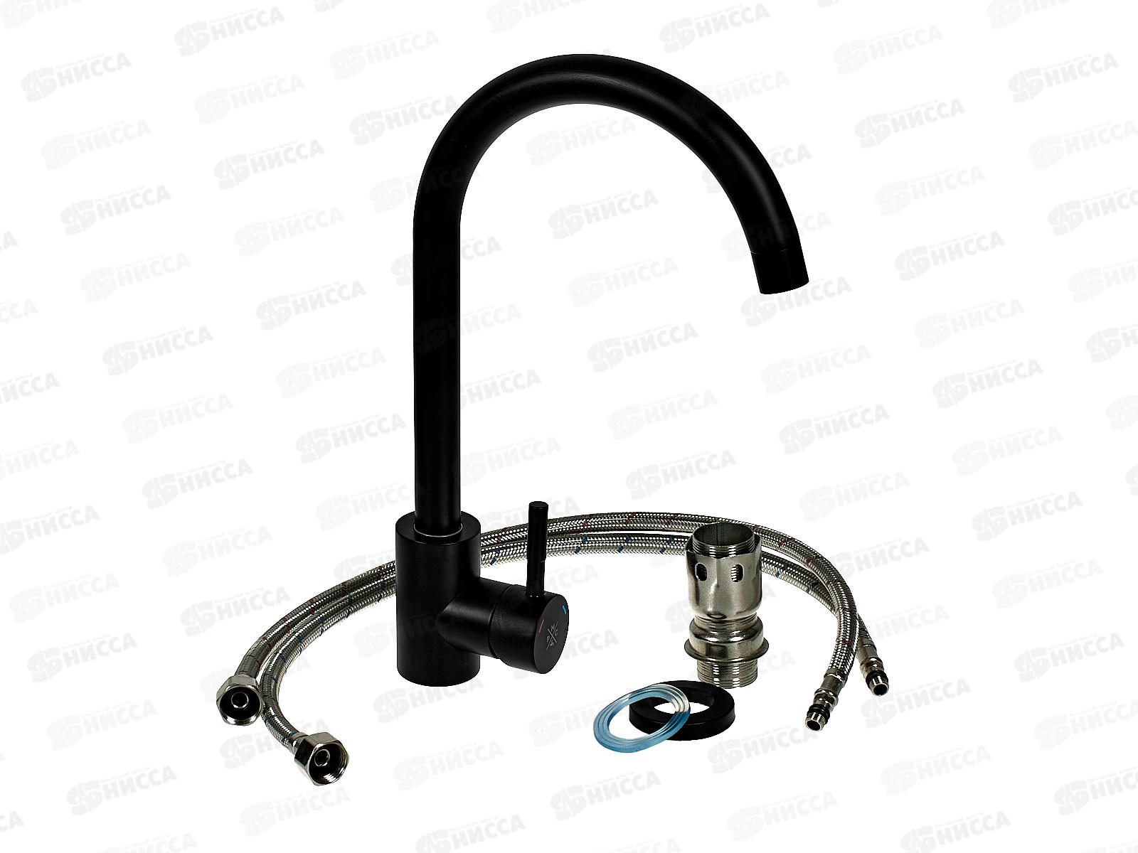 Код:527332; Смеситель для кухни шар., высокий поворотный излив, черный, SUS124BL-017F