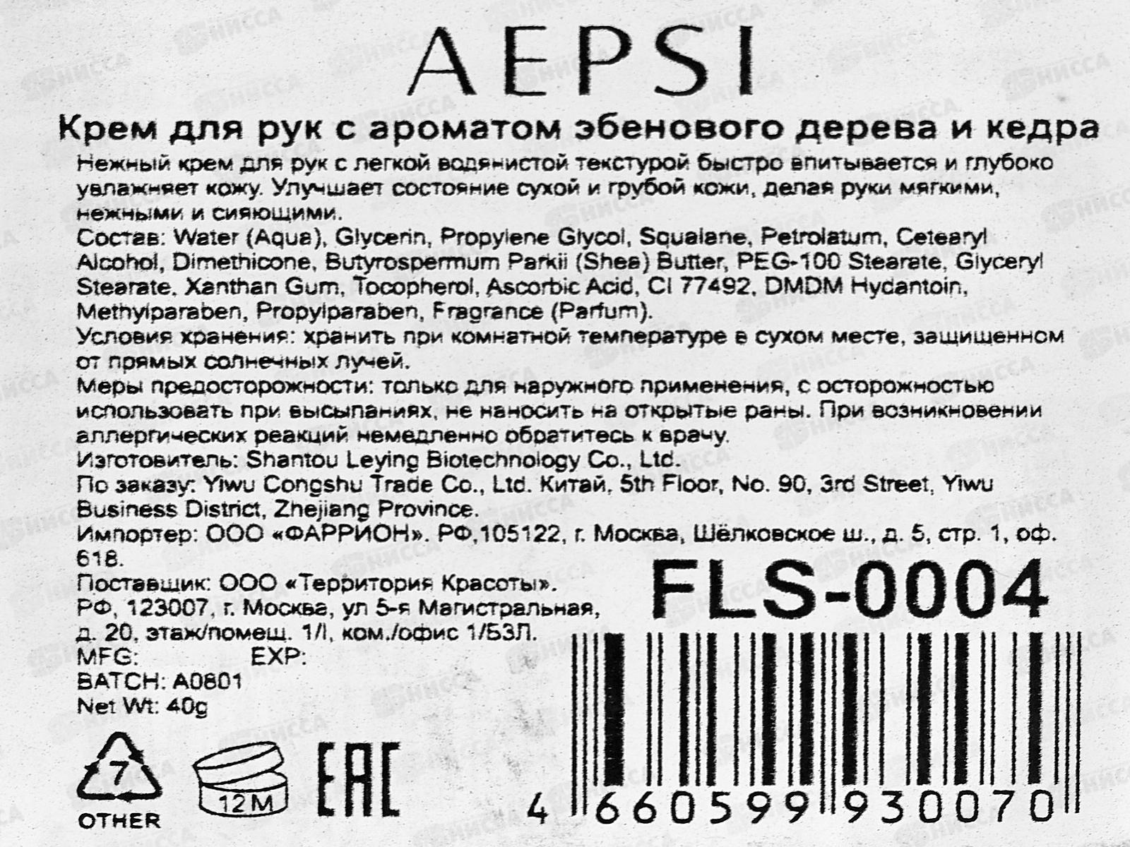 AEPSI GZFX-0004 Крем для рук с ароматом Эбенового дерева и кедр 40мл *1