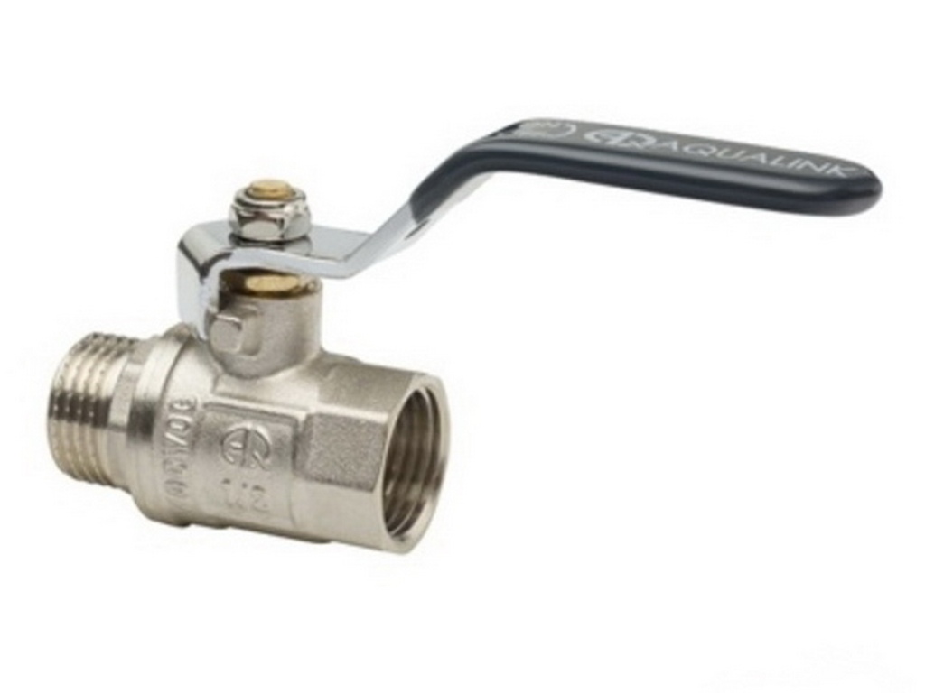 Кран шаровой Aqualink 02427 ручка с наружной резьбой 1/2 дюйма это запорная арматура высокого качества, обладающая усиленным корпусом из никелированно...