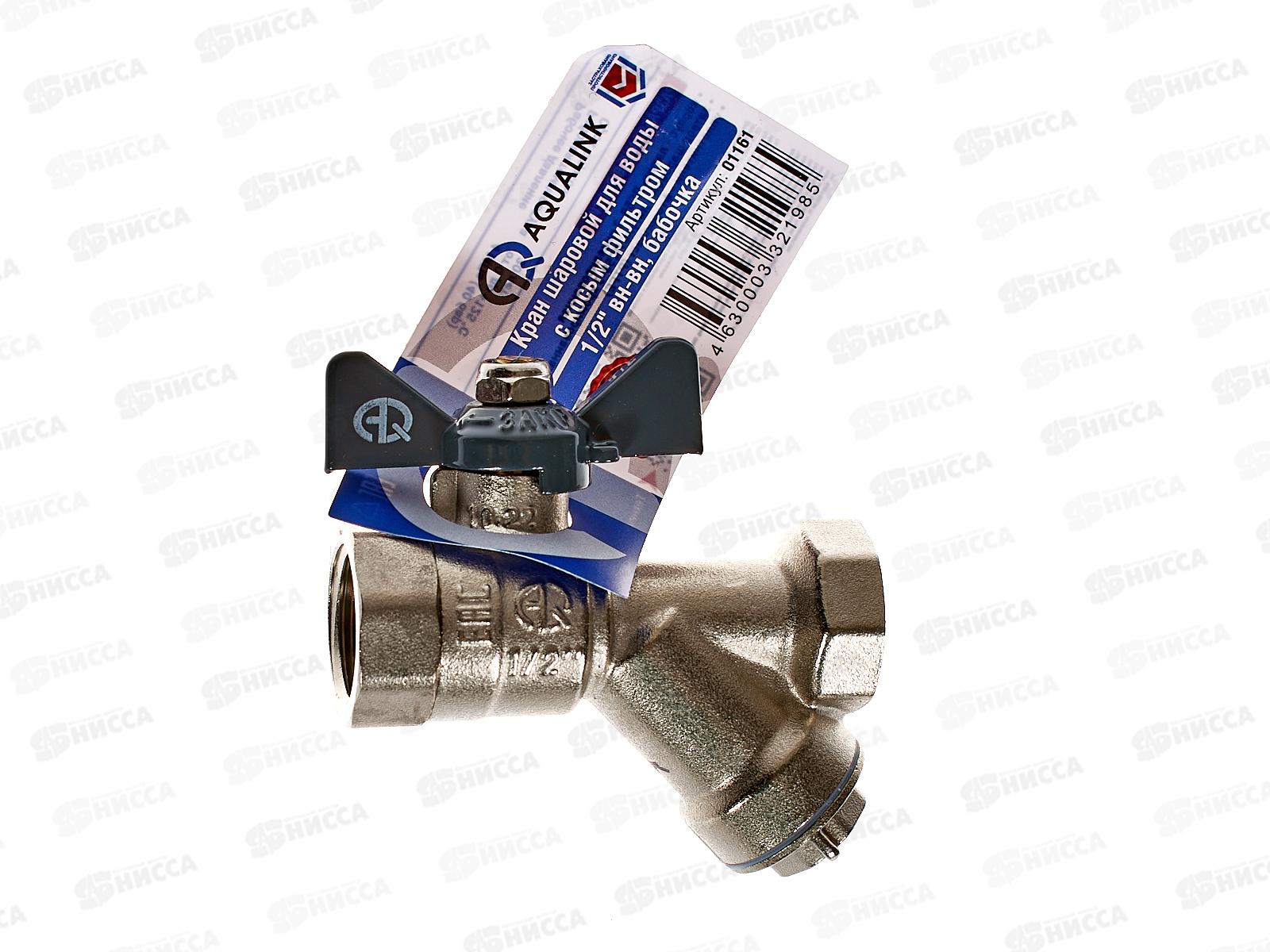 Кран шаровой Aqualink 01161 с фильтром и внутренней резьбой 1/2 дюйма - применяется в качестве запорной арматуры на трубопроводах систем хозяйственног...