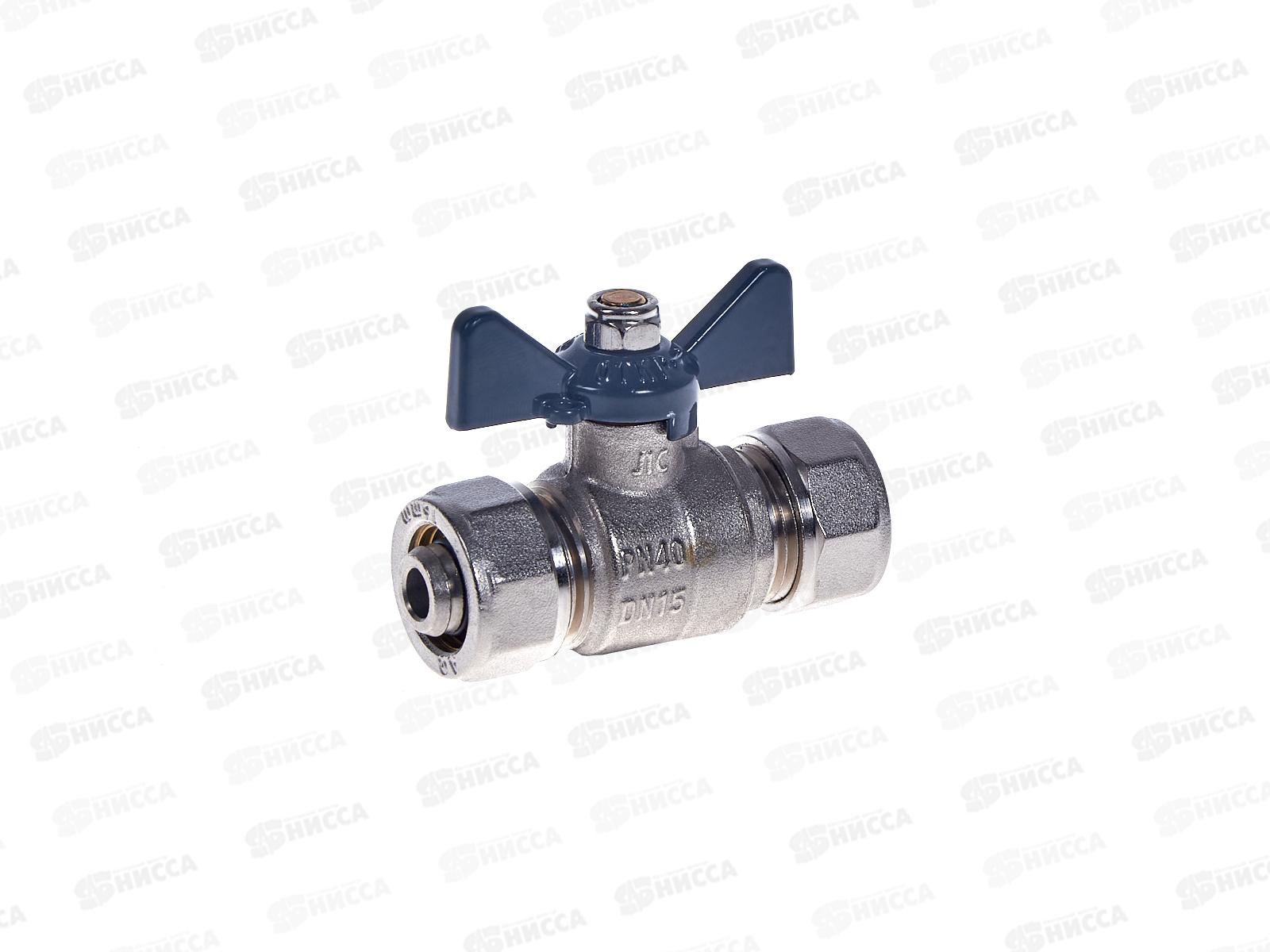 Код:494530; Кран шаровый для металлопластиковых труб F 16*16 В цанга-цанга бабочка, Aqualink 00872 *10/100