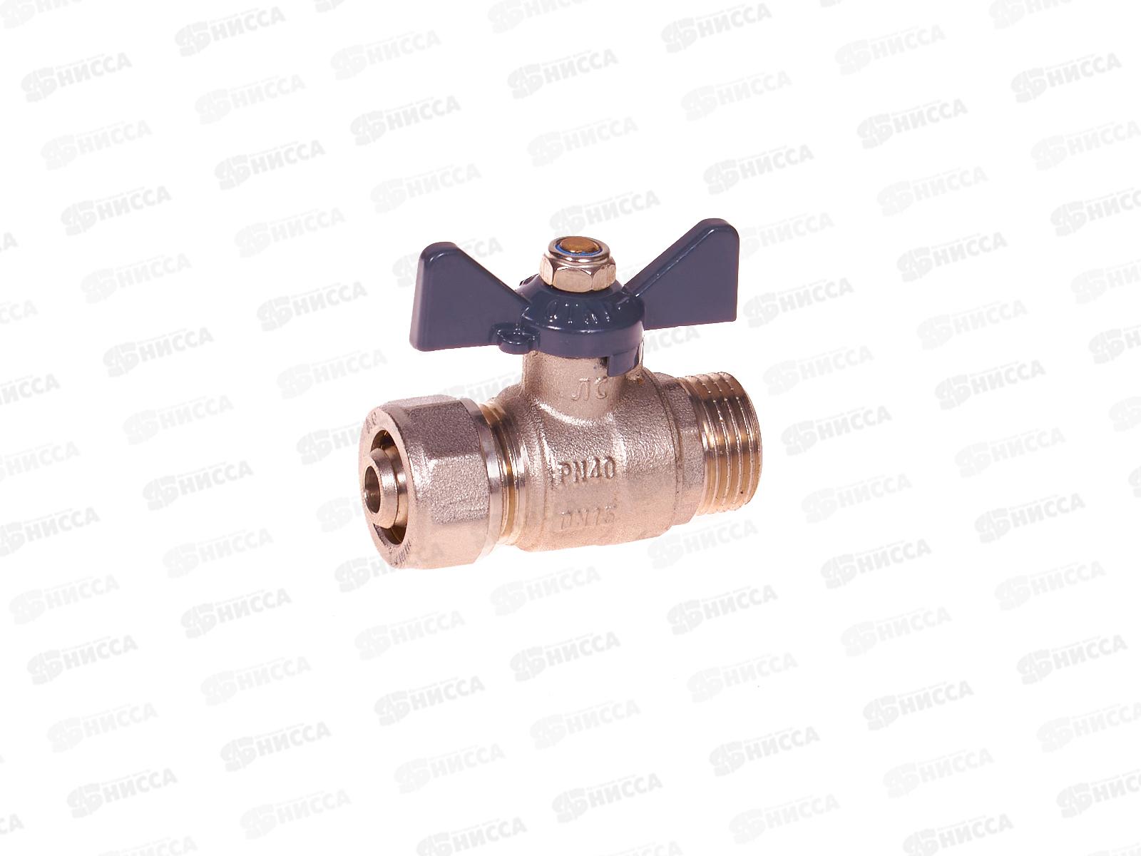 Кран шаровой Aqualink 02430 для металлопластиковых труб бабочка с наружной резьбой 1/2 дюйма 20 мм предназначен для перекрытия движения среды в систем...
