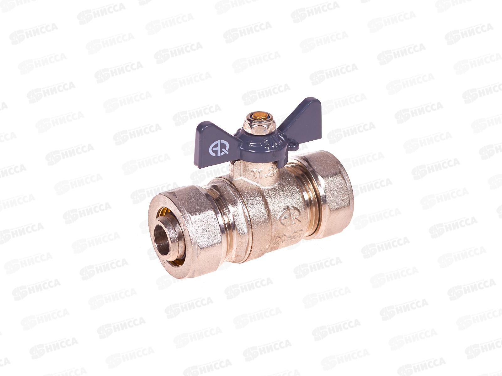 Код:573478; Кран шаровый для МП труб F 20*20 В цанга-цанга бабочка, 00873 *10/100