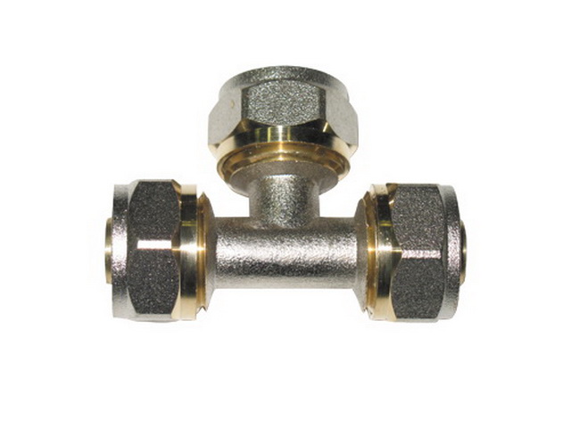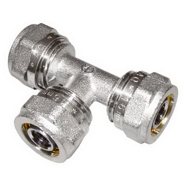 Код:273957; Тройник для металлопластиковых труб T20х20х20, цанга/цанга/цанга, Aqualink, 00171 *10/50
