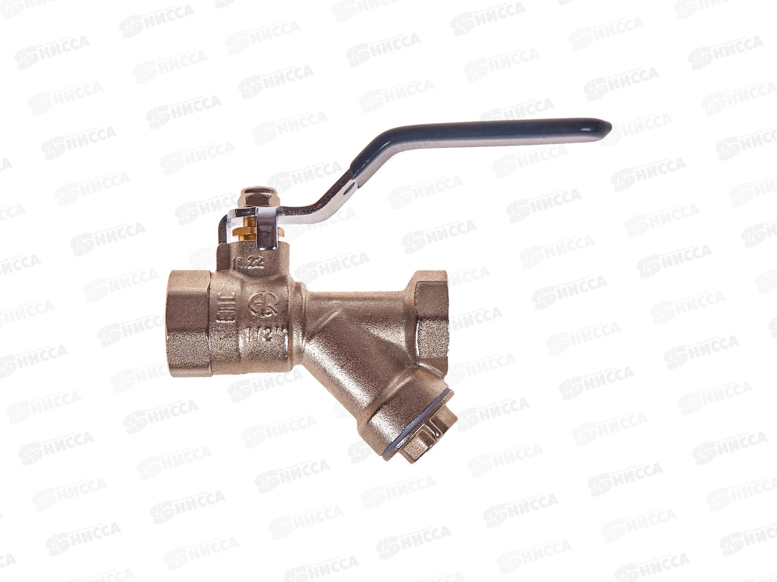 Кран шаровый FF 1/2 Vs В, с косым фильтром, гайка-гайка ручка, 01163 *10/100