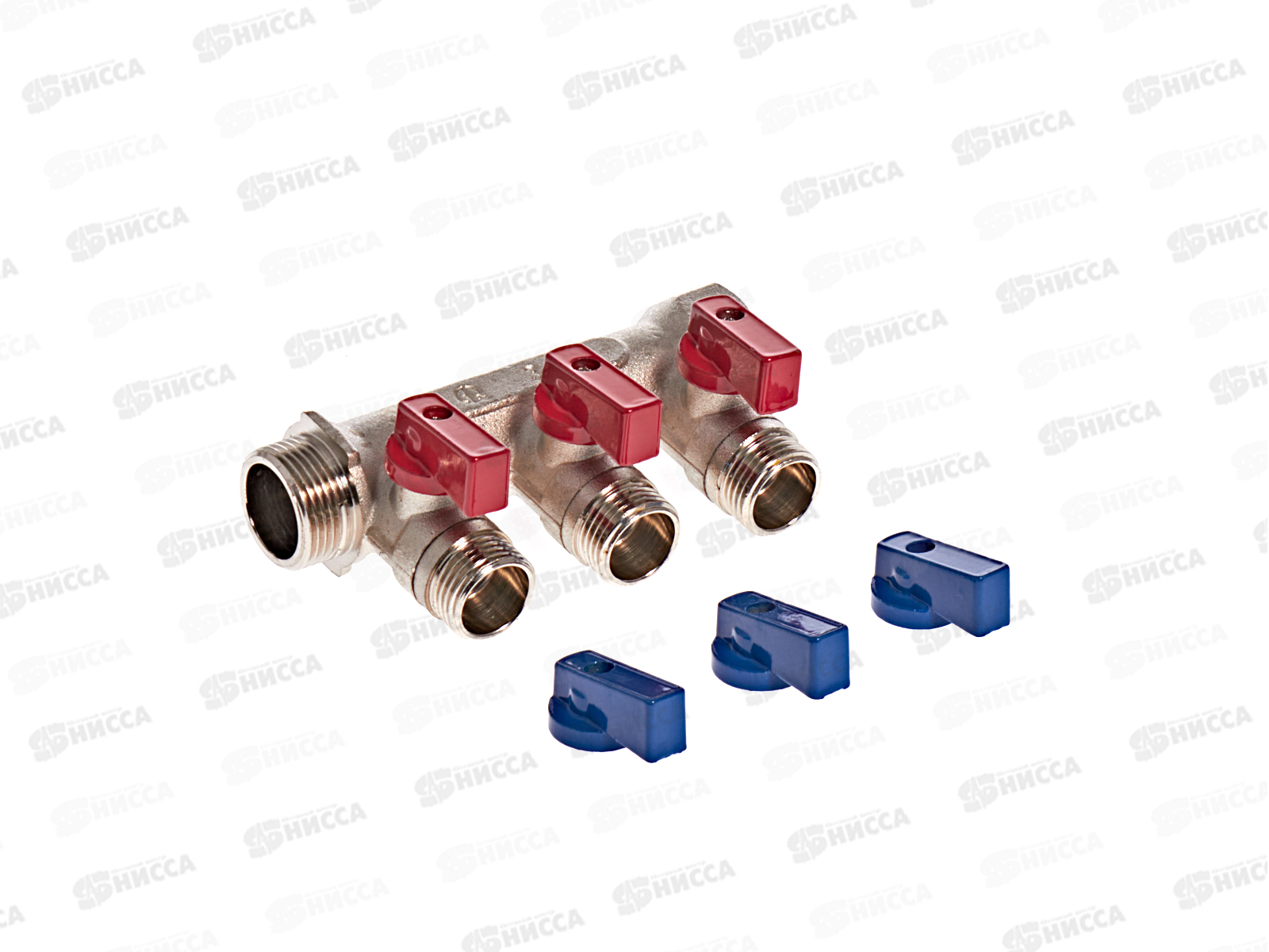 Код:396398; Коллектор резьбовой с вентилями FМ 3/4x3/4x1/2x3, Aqualink 04477 *2/20