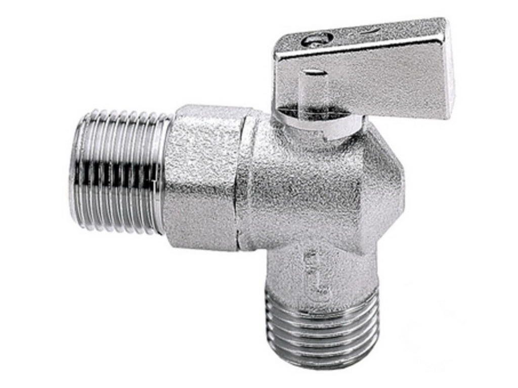 Код:353636; Кран шаровой угловой для СМ с отражением, хром. MM 1/2x3/4 штуцер-штуцер ручка-флажок: хром, Aqualink, 01331 *10/120