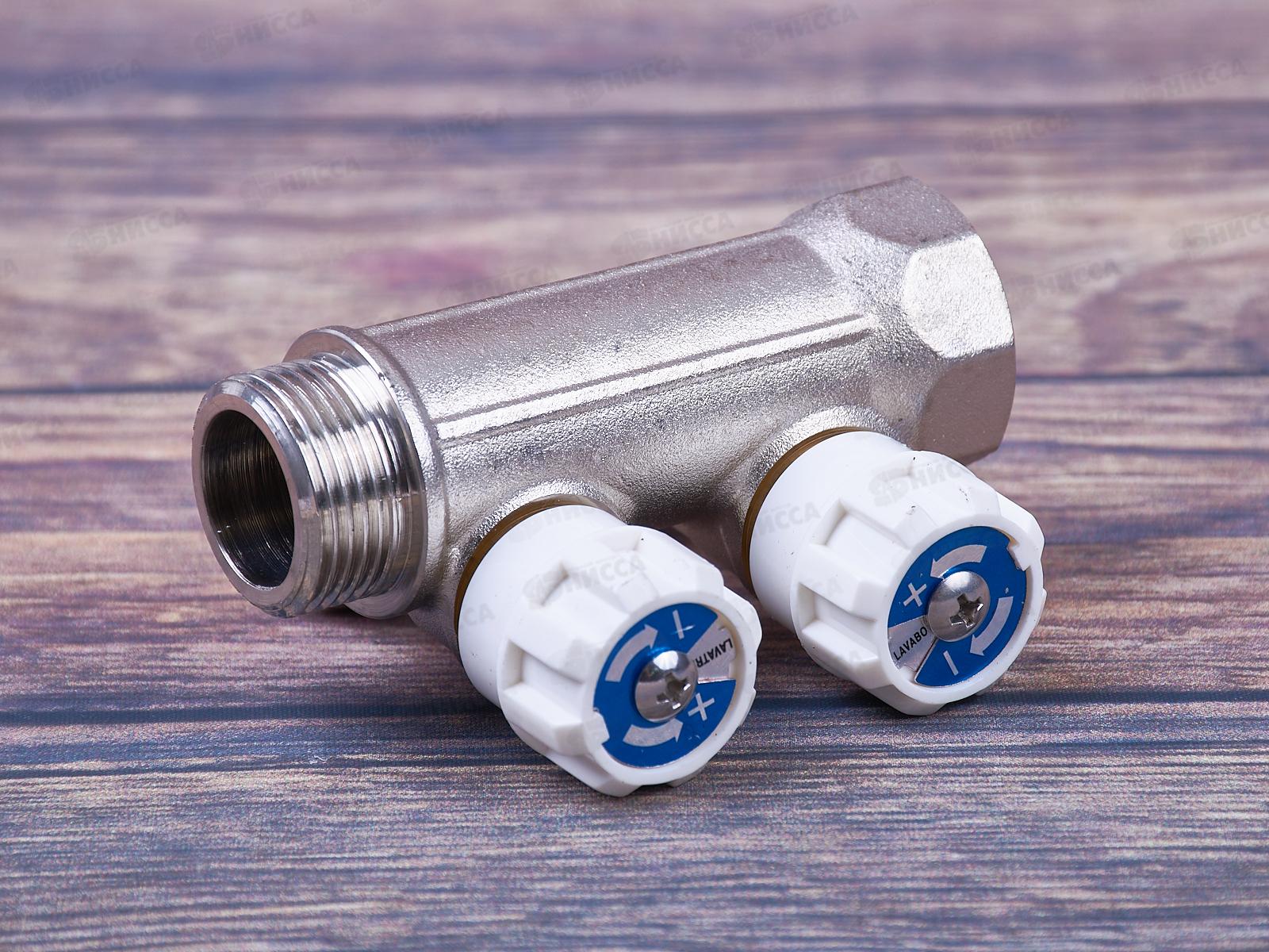 Коллектор резьбовой Aqualink 04476 2 выхода с вентилями с внутренней и наружной резьбой 3/4х1/2 дюйма используется для распределения и регулирования р...