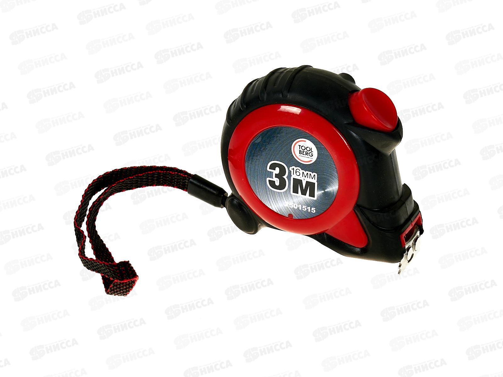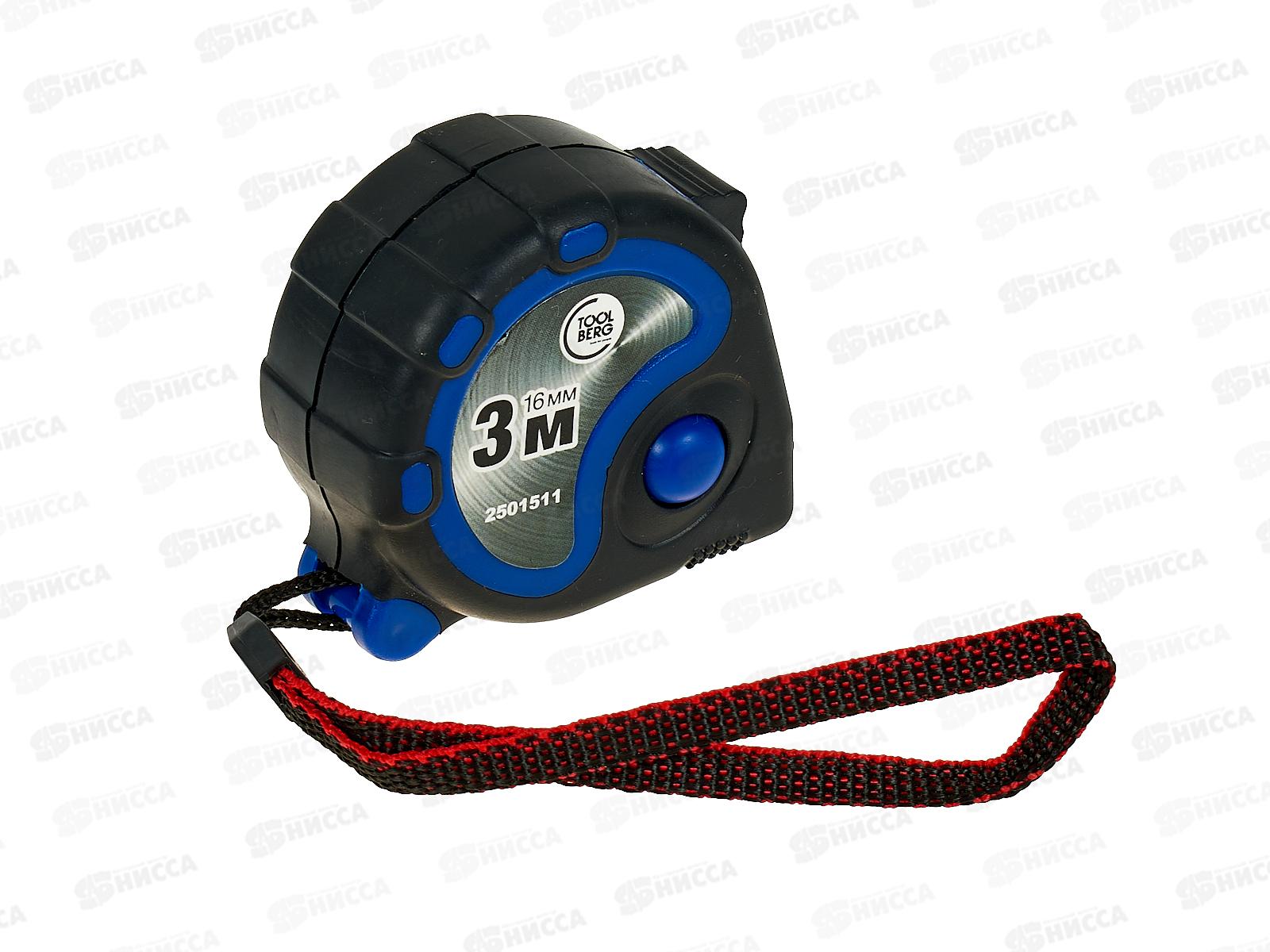 Код:312220; Рулетка 3м*16мм (обрезиненный корпус, 3 фиксатора, магнит), ToolBerg, 2501511 *12/180