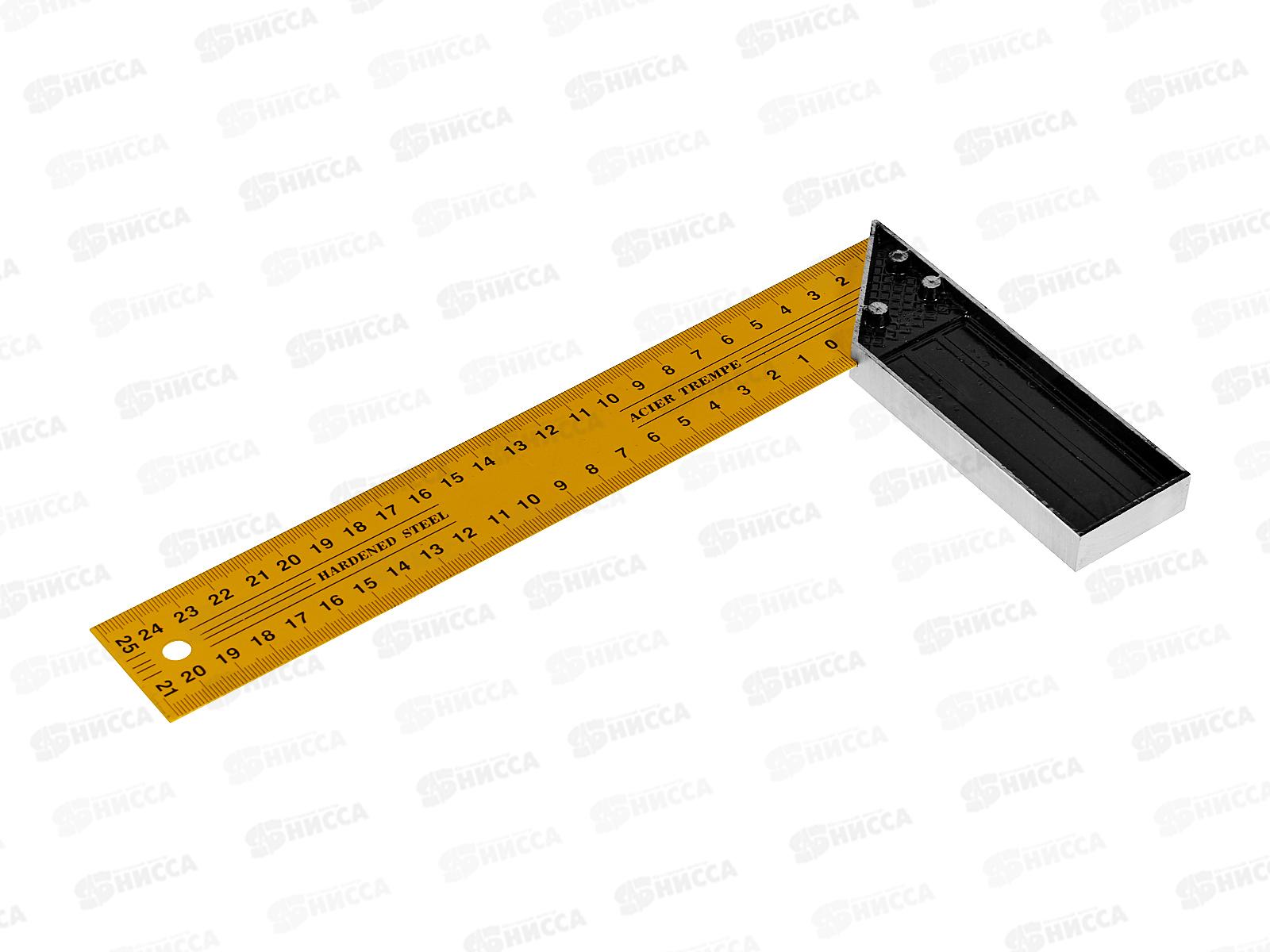 Угольник стальной. Двойная разметка позволяет проводить измерения, учитывая или не учитывая ширину рукоятки. Полотно из инструментальной стали надежно...