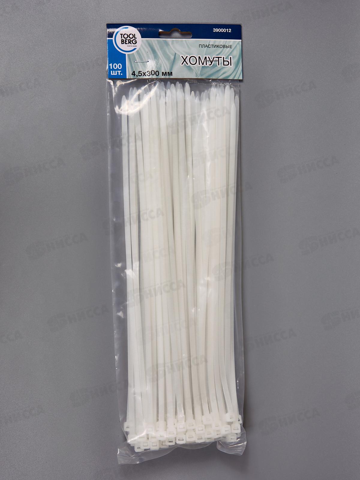 Код:535990; Хомуты 4,5*300мм пластик белые 100шт, 3900012 *150