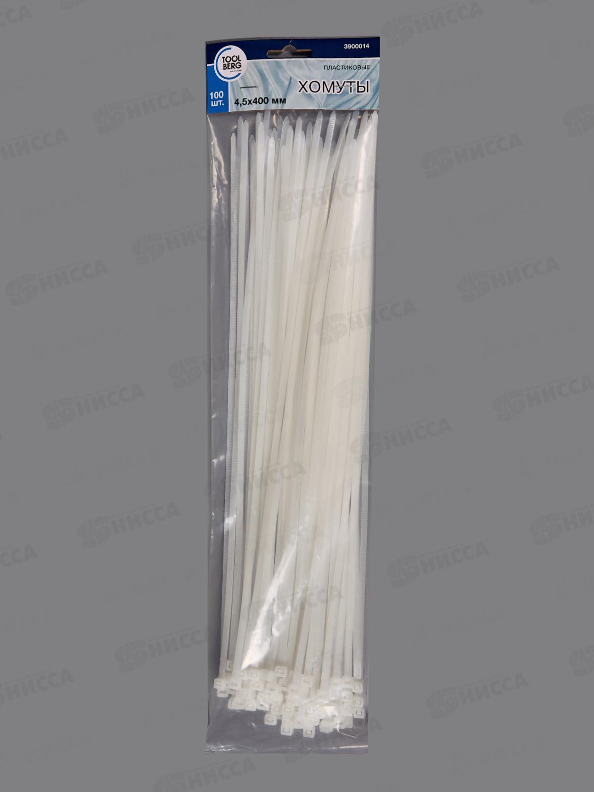 Код:535992; Хомуты 4,5*400мм пластик белые 100шт, 3900014 *100