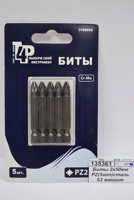 Код:135361; Биты 2х50мм PZ(5шт)сталь S2 магнит 3102252 Л