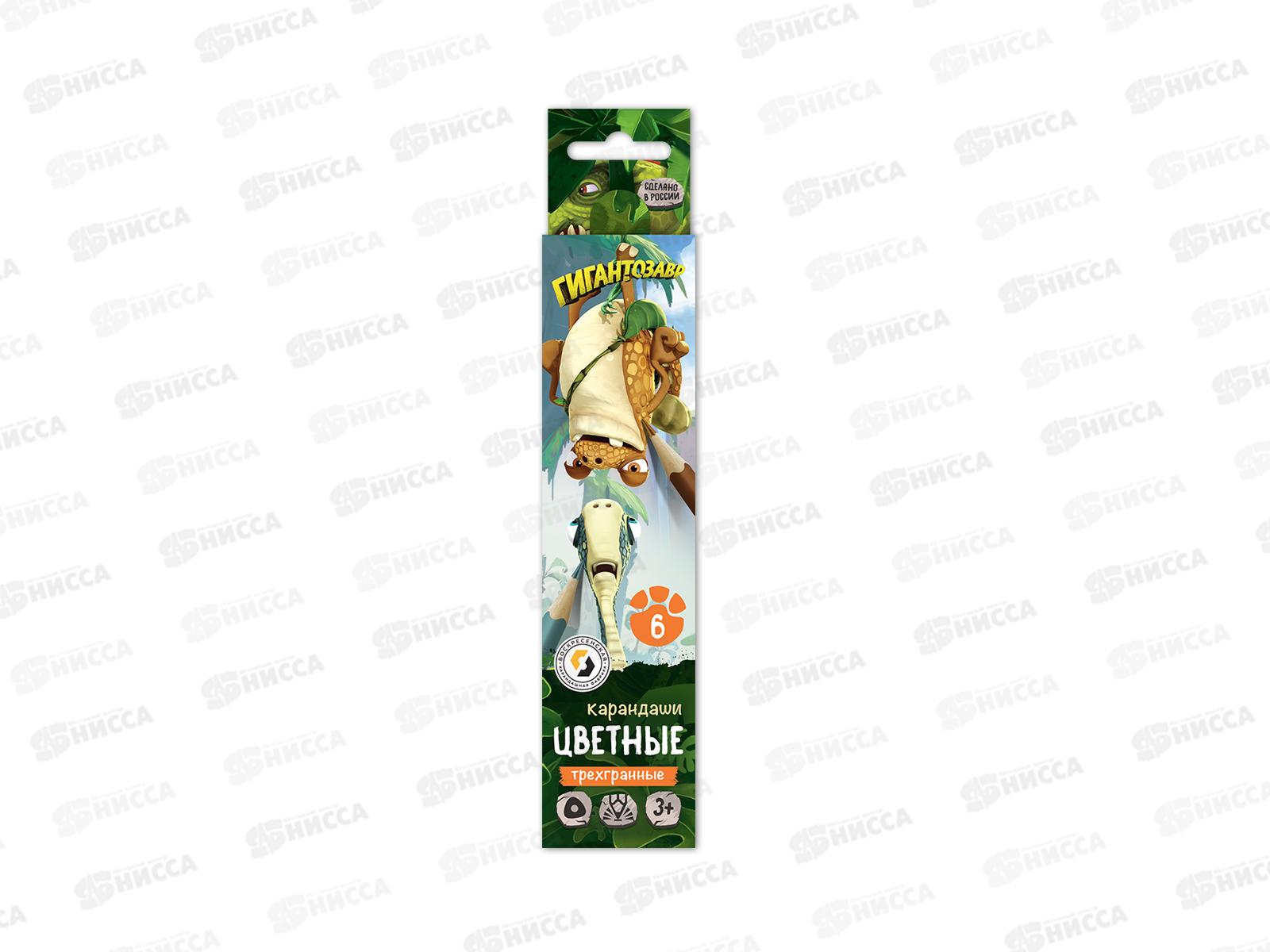 Код:412149; Карандаши 6 цветов ВКФ "Гигантозавр", GGZ-CP-6006*8