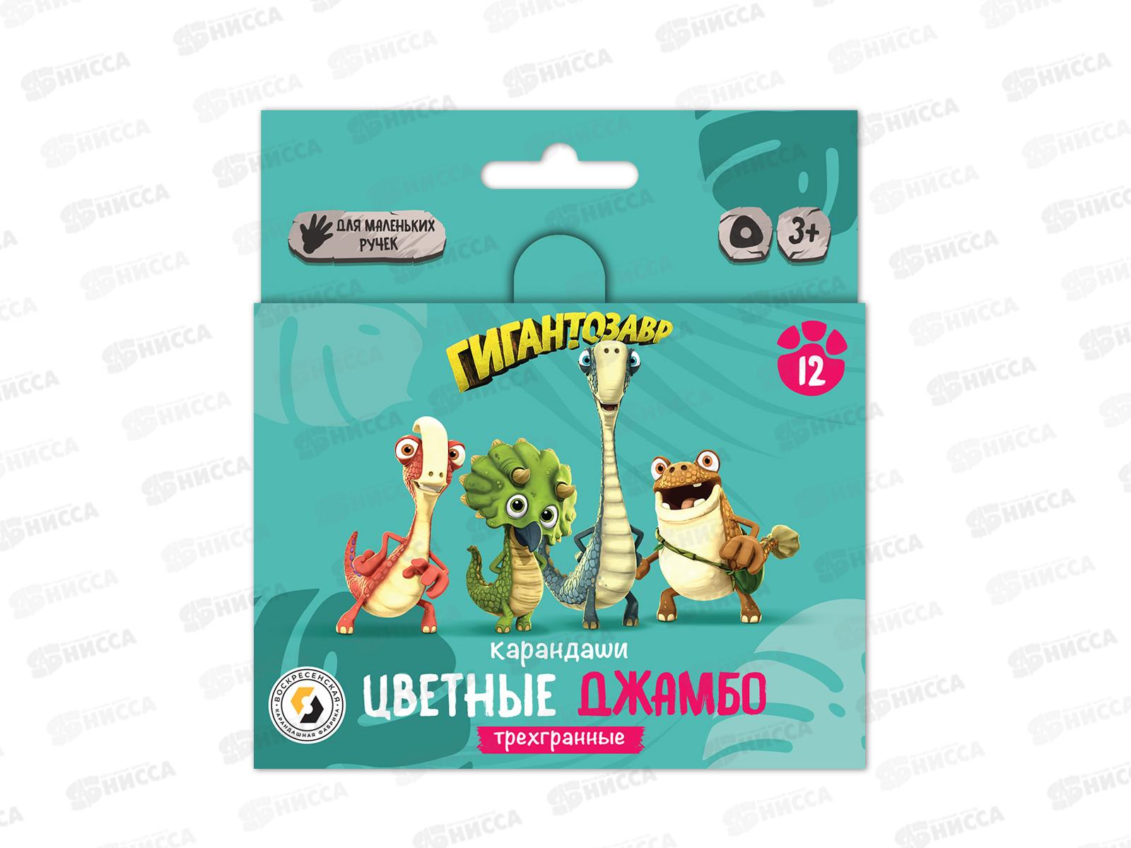 Код:412150; Карандаши 12цв ВКФ "Гигантозавр" Джамбо, трехгран. GGZ-SJCP-6012*12/72