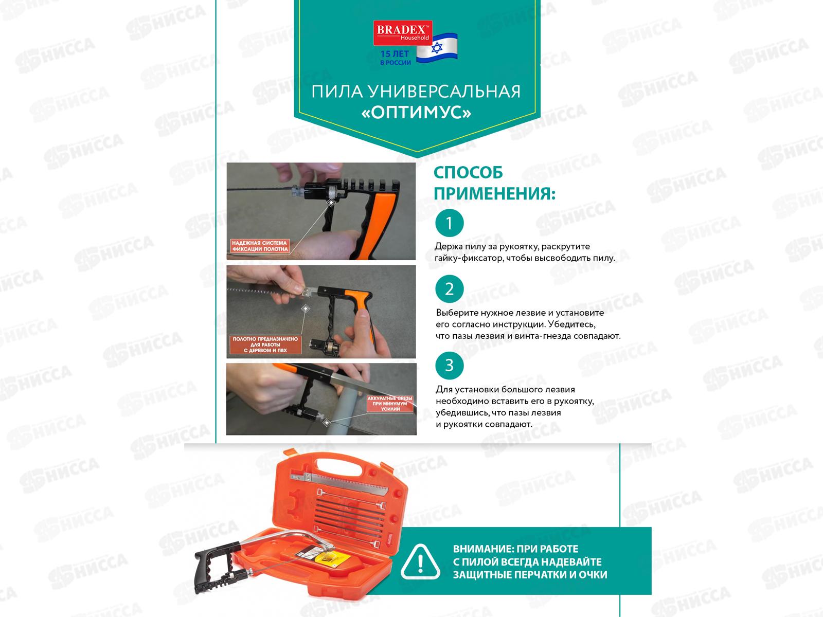 Универсальная пила BRADEX ОПТИМУС TD 0204 подходит для любых работ по дереву, ПВХ, керамике и стеклу. Позволяет добиться ровных аккуратных срезов без сколов при минимуме усилий. В комплекте есть кейс, удобный для хранения и переноски. Пила отлично подходит для использования в быту, на даче, в гараже, при строительстве и ремонте.