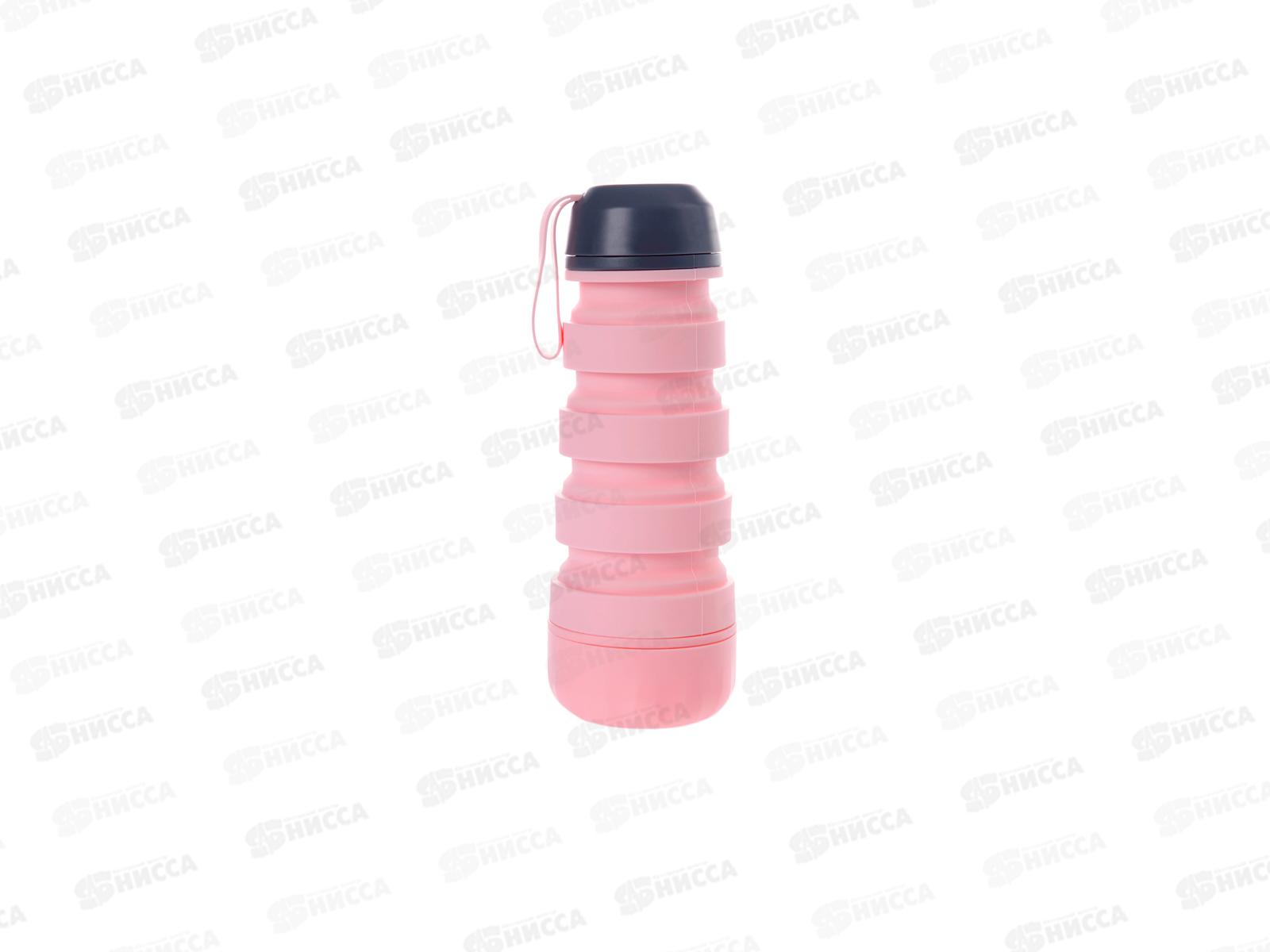 Код:409906; Силиконовая складная бутылка с отсеком для таблеток розовая KZ 0657