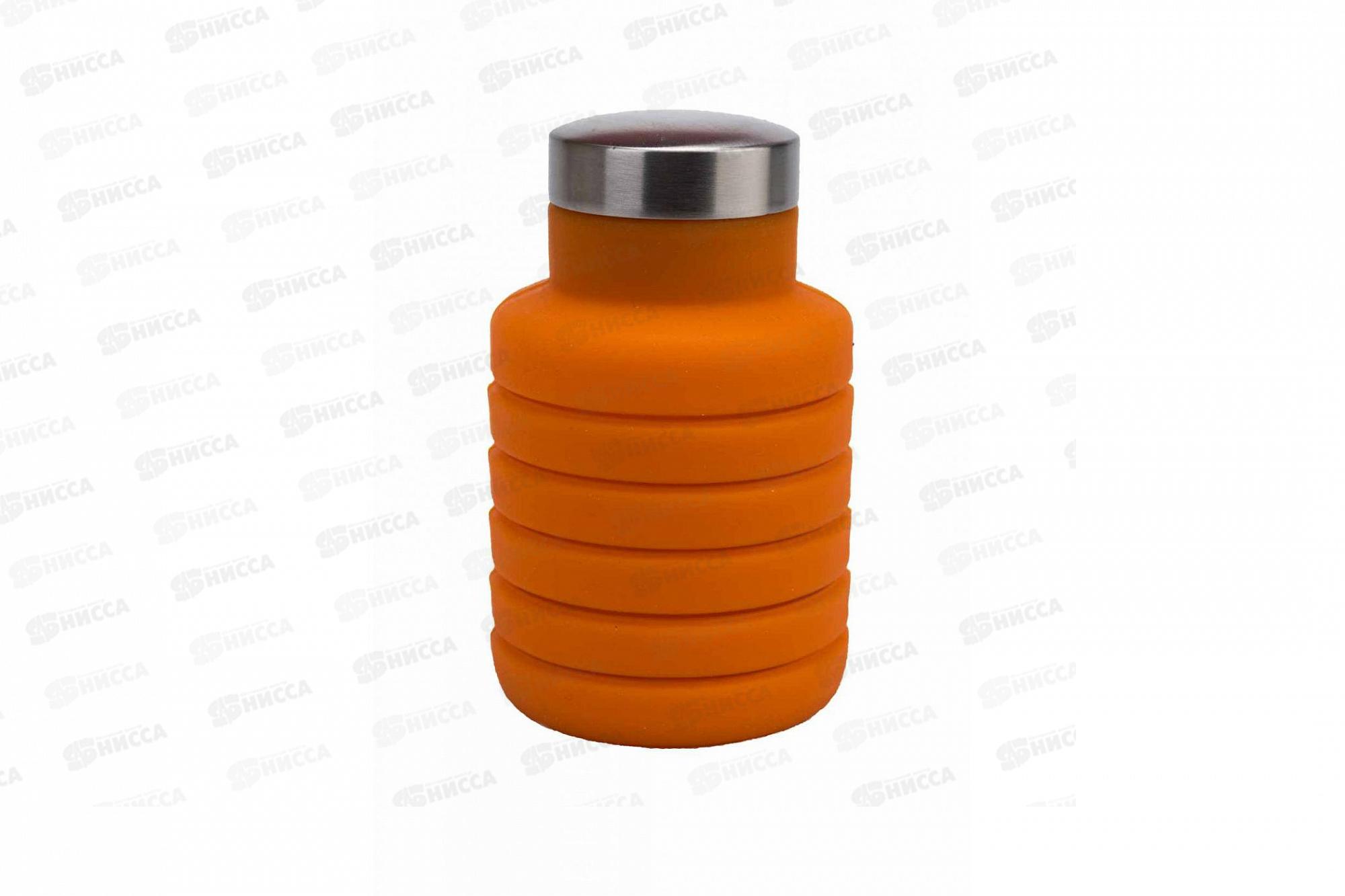 Код:410003; Силиконовая складная бутылка для воды с крышкой 500мл оранжевая TK 0268