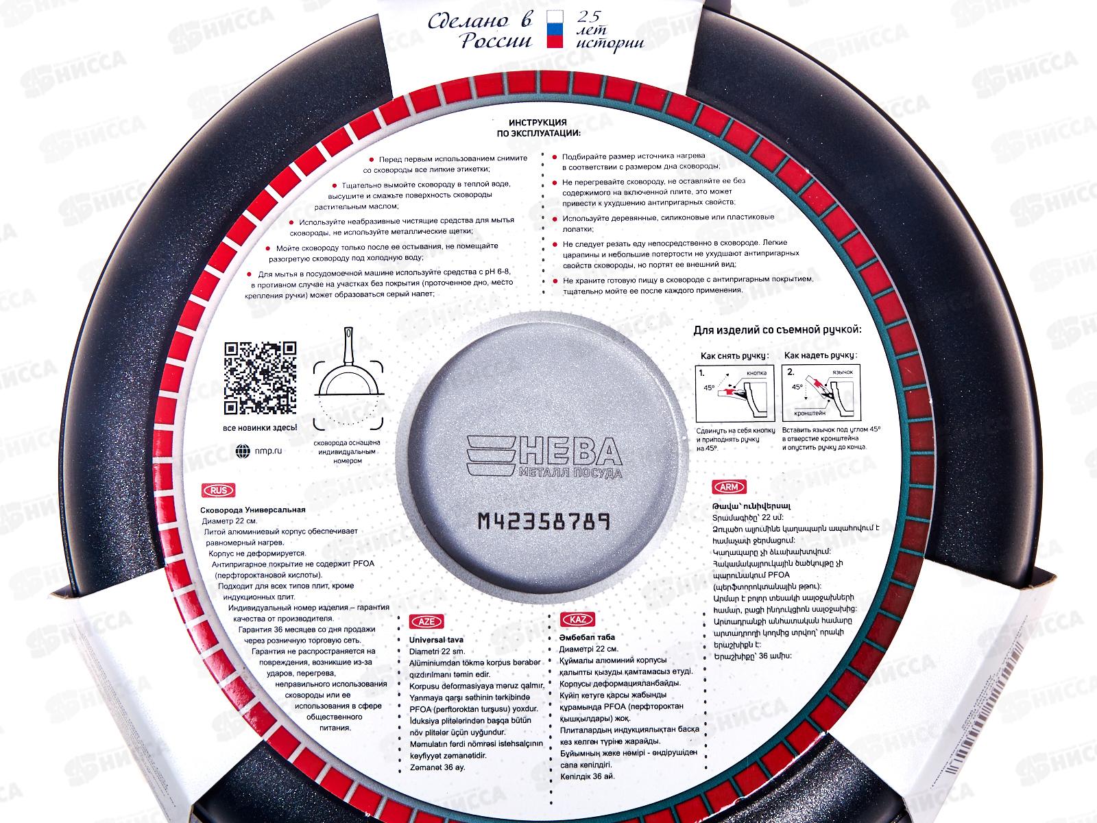 Сковорода 22см ПР литая (полимер-керамика) со съемной ручкой 9022