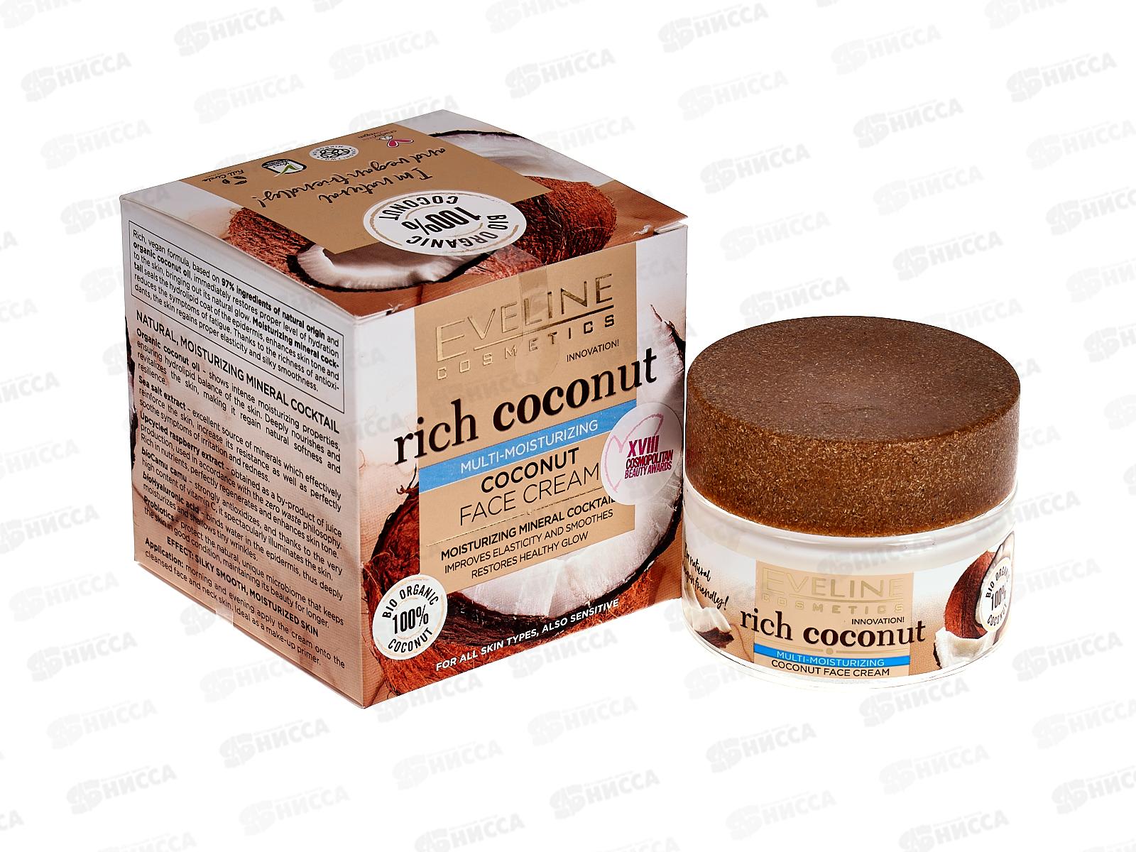Код:465579; ЭВЕЛИН R.C. Мультифункц кокосовый крем для лица для сухой чувствительной кожи 50мл *30