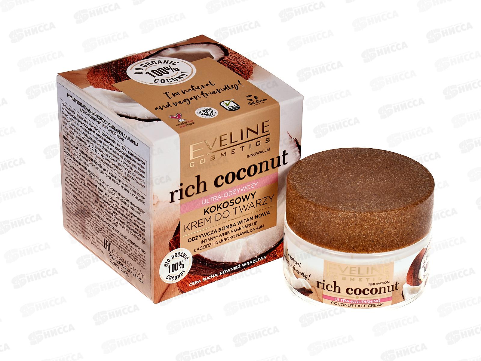 Код:465578; ЭВЕЛИН R.C. Интенс-увлж кокосовый крем для лица для чувствительной кожи 50мл *30