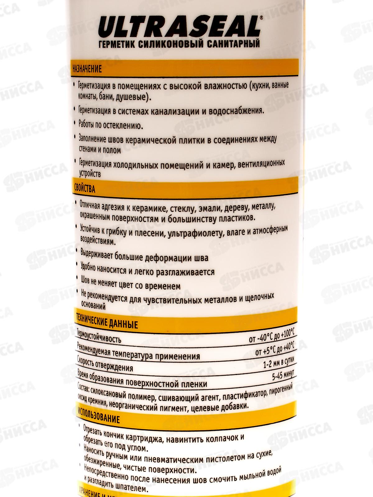 Герметик силиконовый ULTRASEAL санитарный Бесцветный, 260мл *12