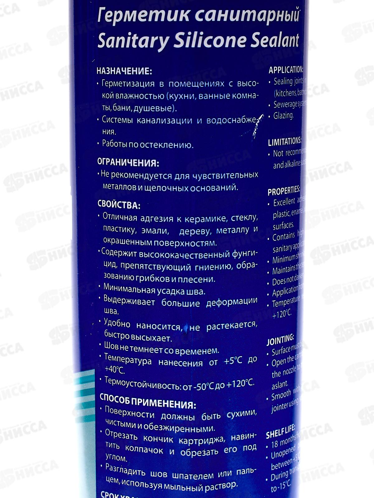 Герметик KRASS 300мл силиконовый санитарный белый *12 ЛАКРА