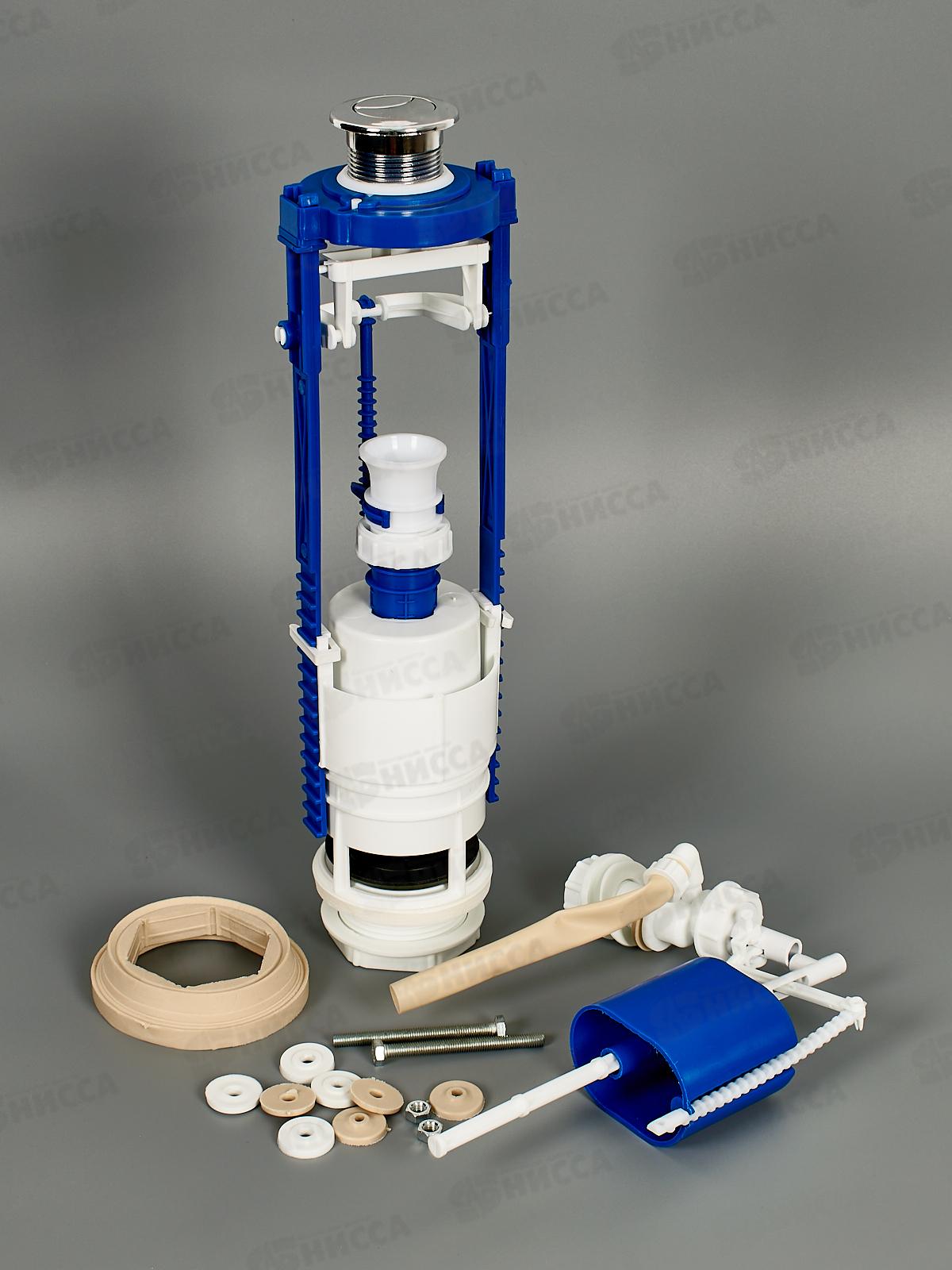 Арматура АС-11.1М кнопочная 2-х уровневая с универсальным клапаном боковой подводки воды. Данная арматура качественно отличается от штоковых арматур, при этом она включает в себя лучшие их качества. Арматура универсальная: устанавливается в "средние" бачки (высота до крышки бачка от 310 мм до 390 мм), и "высокие" (высота до крышки бачка 420 мм).