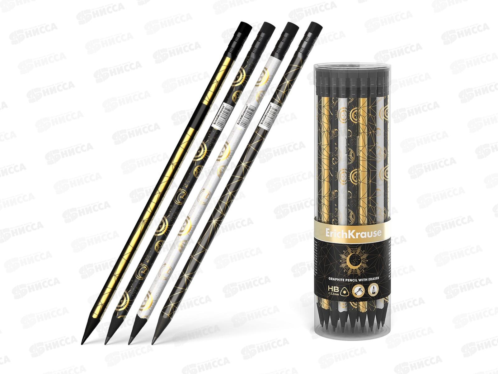 Карандаш от бренда ErichKrause "Jet Black" - классический шестигранный чернографитный карандаш с ластиком из отборной древесины, твердость НВ....