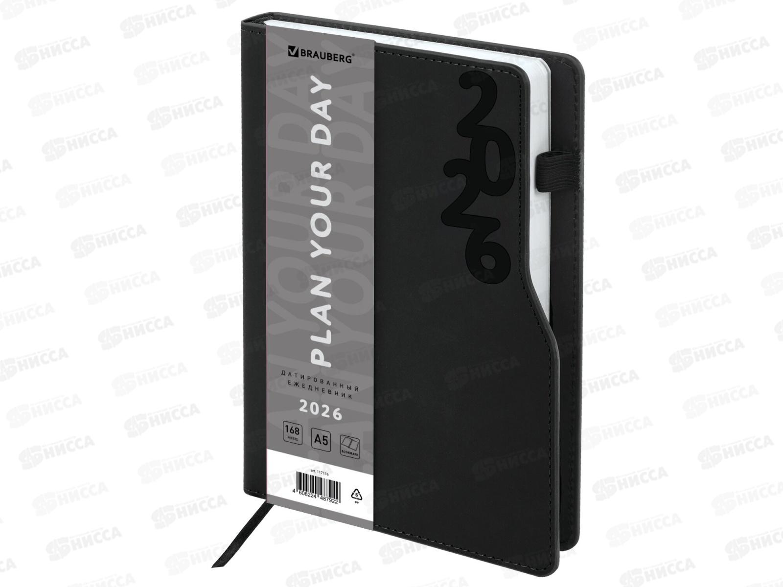Код:584232; Ежедневник BRAU 2026 А5,Up, soft-тач. держ д/ручки, черный 117116 *10