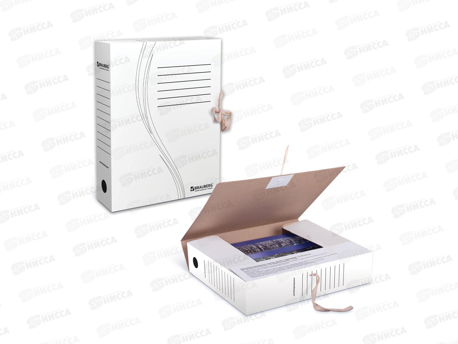 Код:442969; Папка для бумаг на завязках,75мм BRAU белая 124850*200