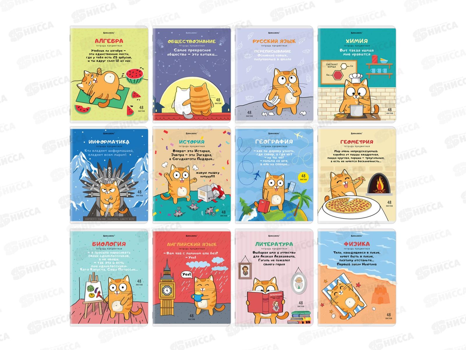 Код:496677; Набор 48листов тетрадей BRAU 12предм.,Кот-энтузиаст,404609*8