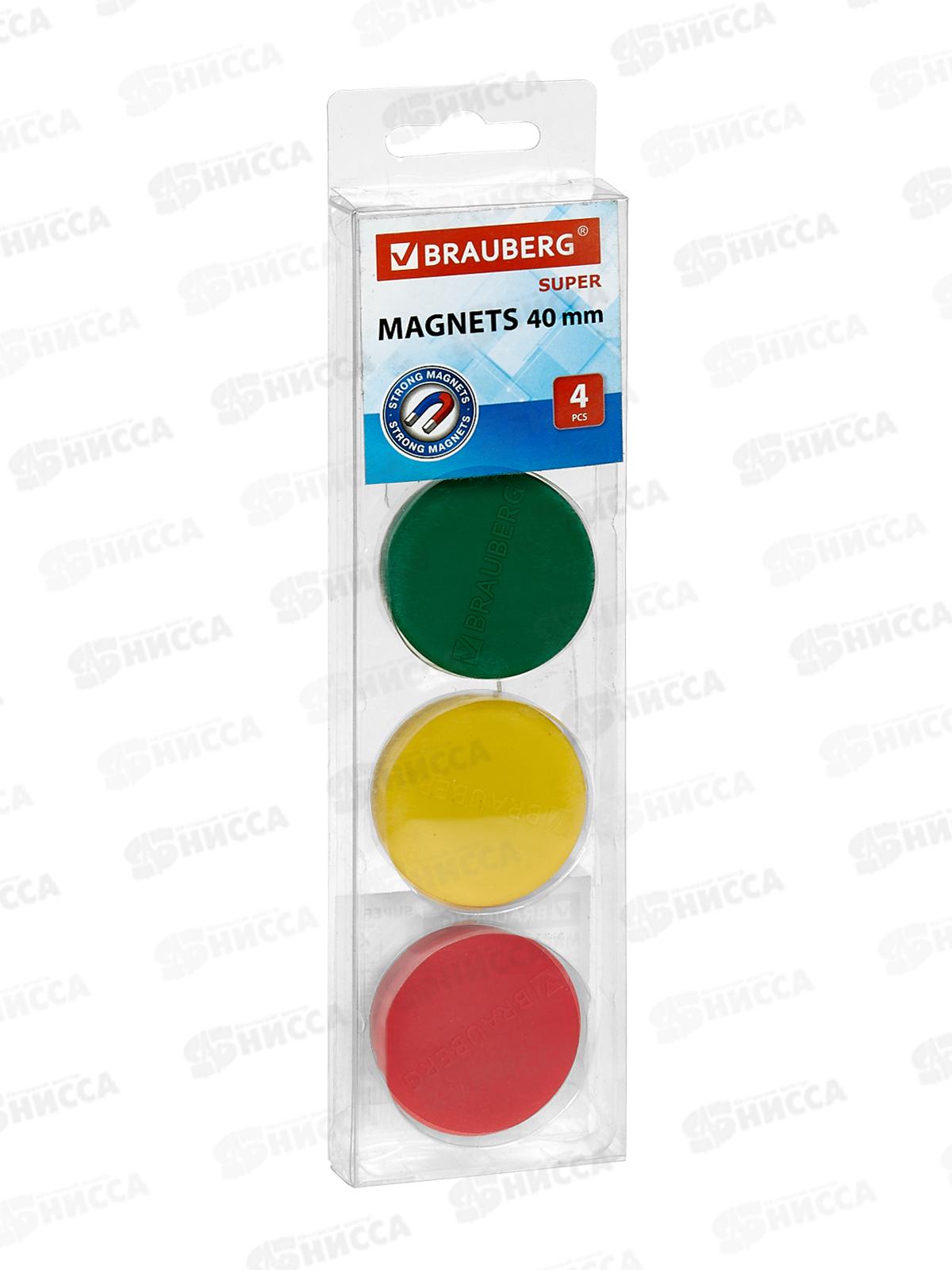Код:579087; Магниты BRAUBERG 40мм 4шт, асс, 237480 *24