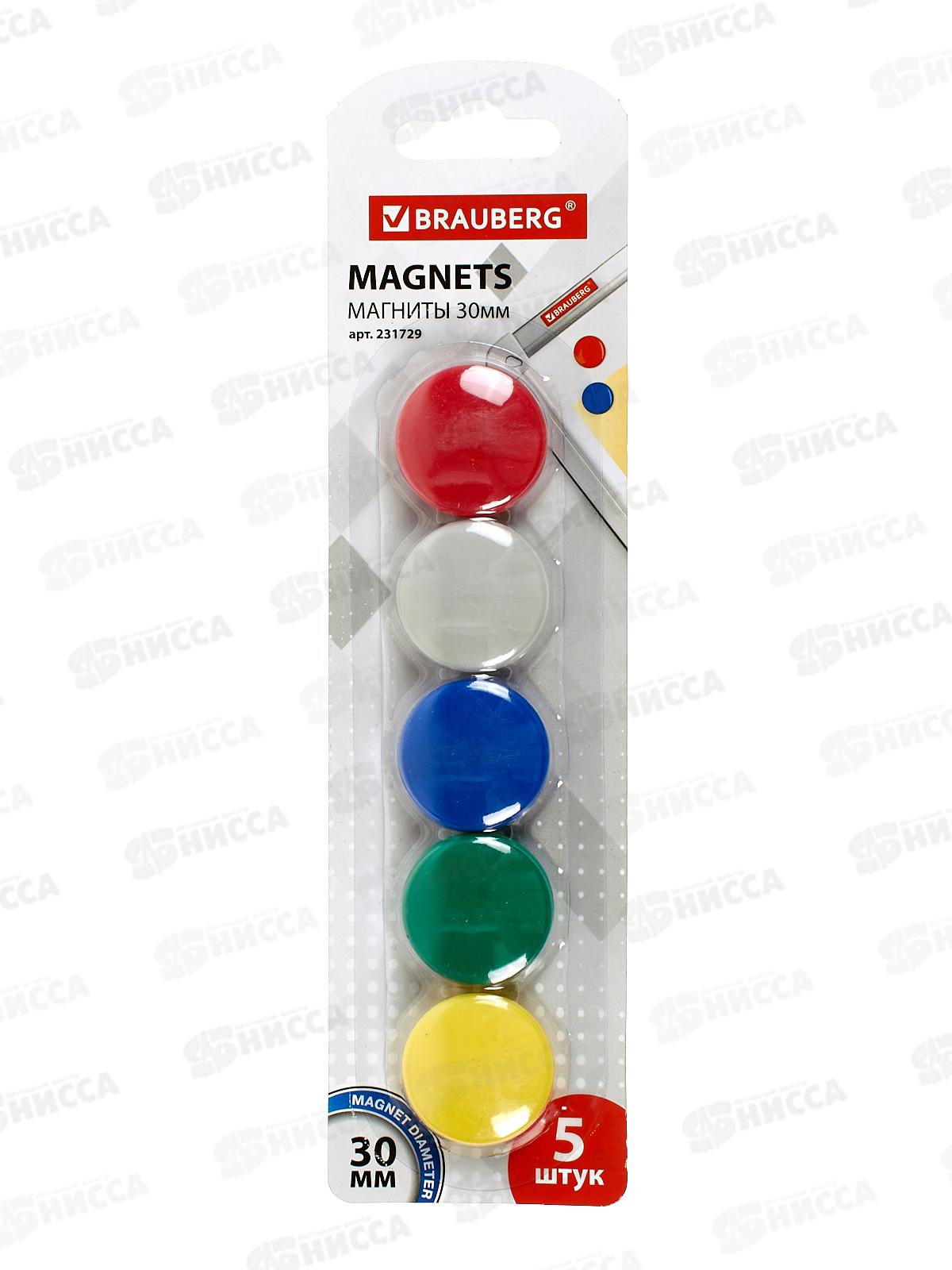 Код:579088; Магниты BRAUBERG 30мм 5шт, асс, 231729 *24