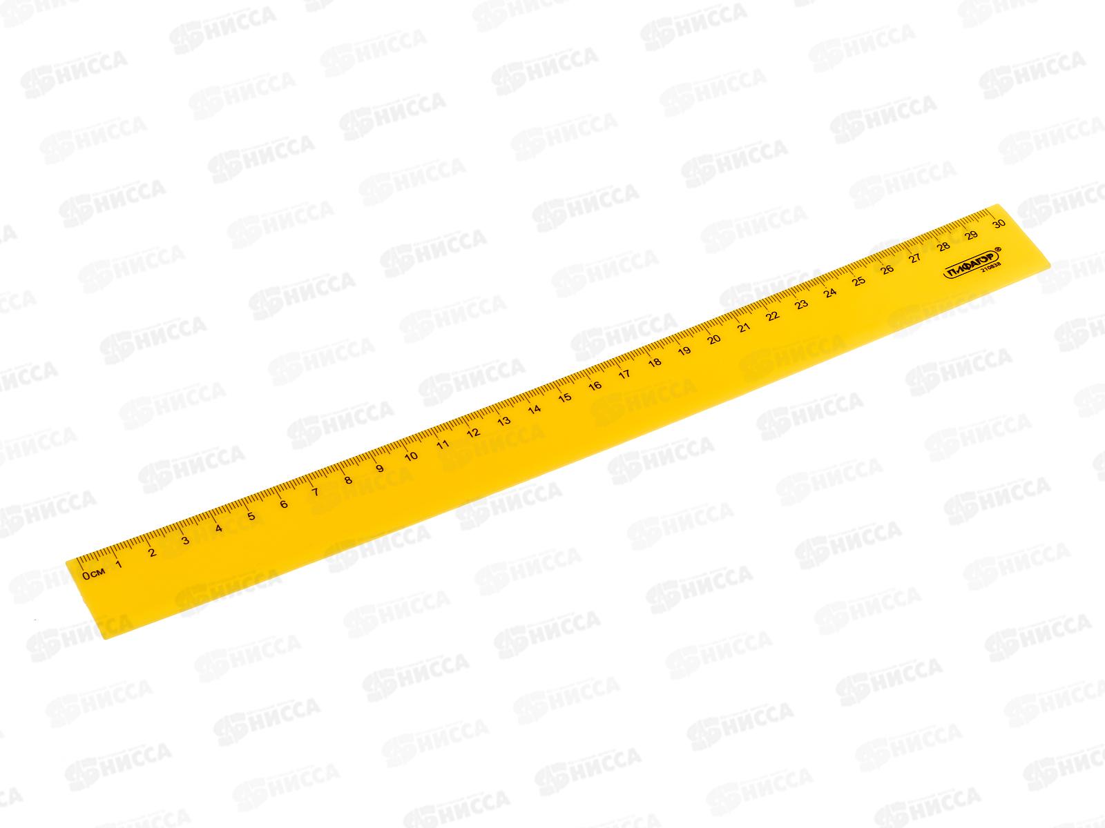 Прозрачная линейка из пластика с держателем. Длина шкалы составляет 30 см. Линейка обладает четкой разметкой, что делает ее удобной в использовании. И...