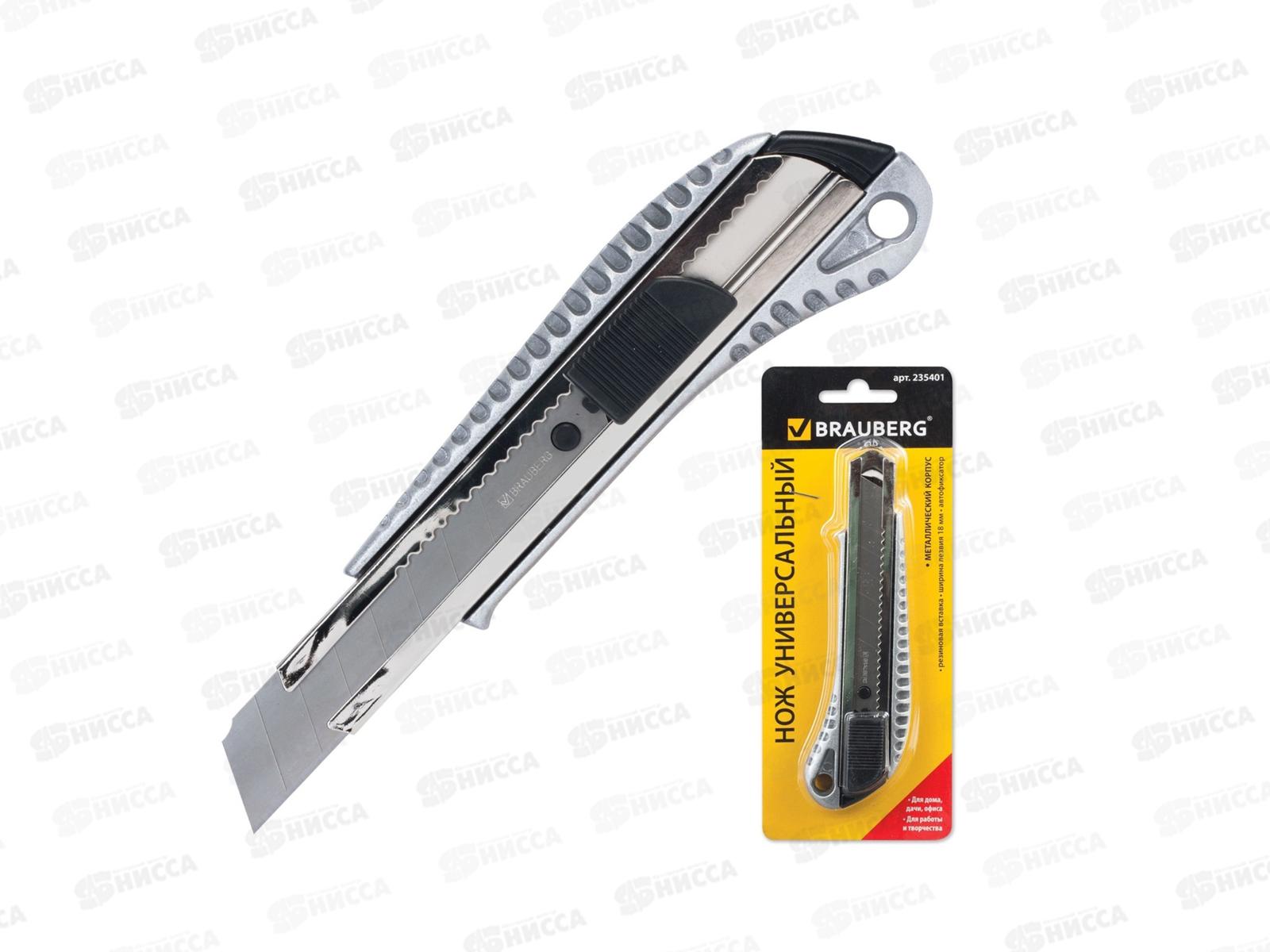 Код:411928; Нож канцелярский BRAUBERG 18мм, металлический корпус 235401*12
