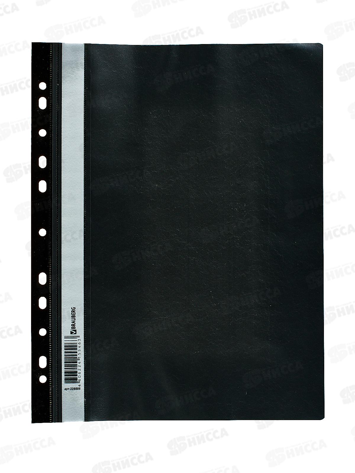Код:516195; Скоросшиватель пластиковый BRAU с перф.,черный, 226586 *10/400