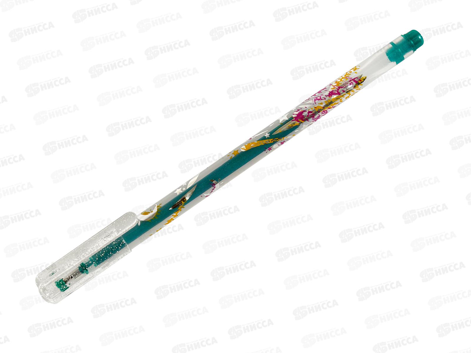 Ручка гелевая CROWN зеленая, люрекс, одноразовая, MTJ-500GLS(D) *12