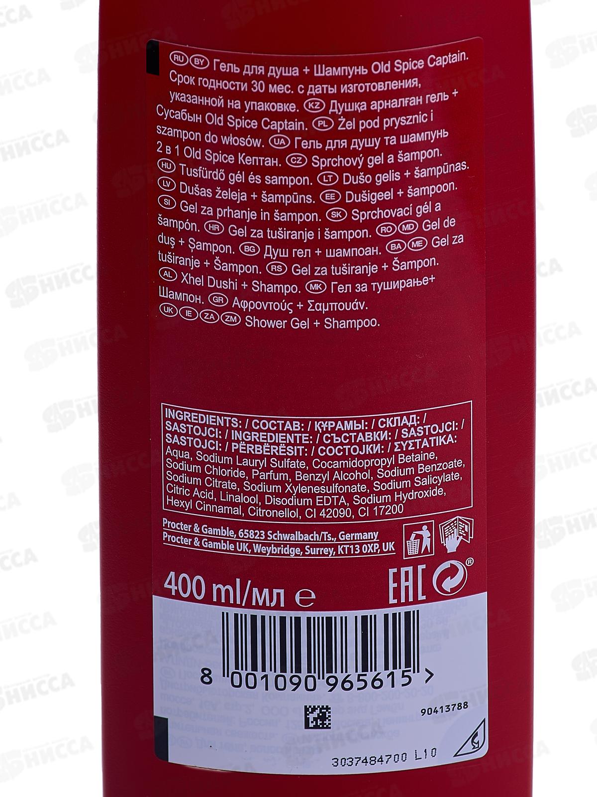 ОЛД СПАЙС гель для душа+шампунь 2в1 Captain 400мл *6