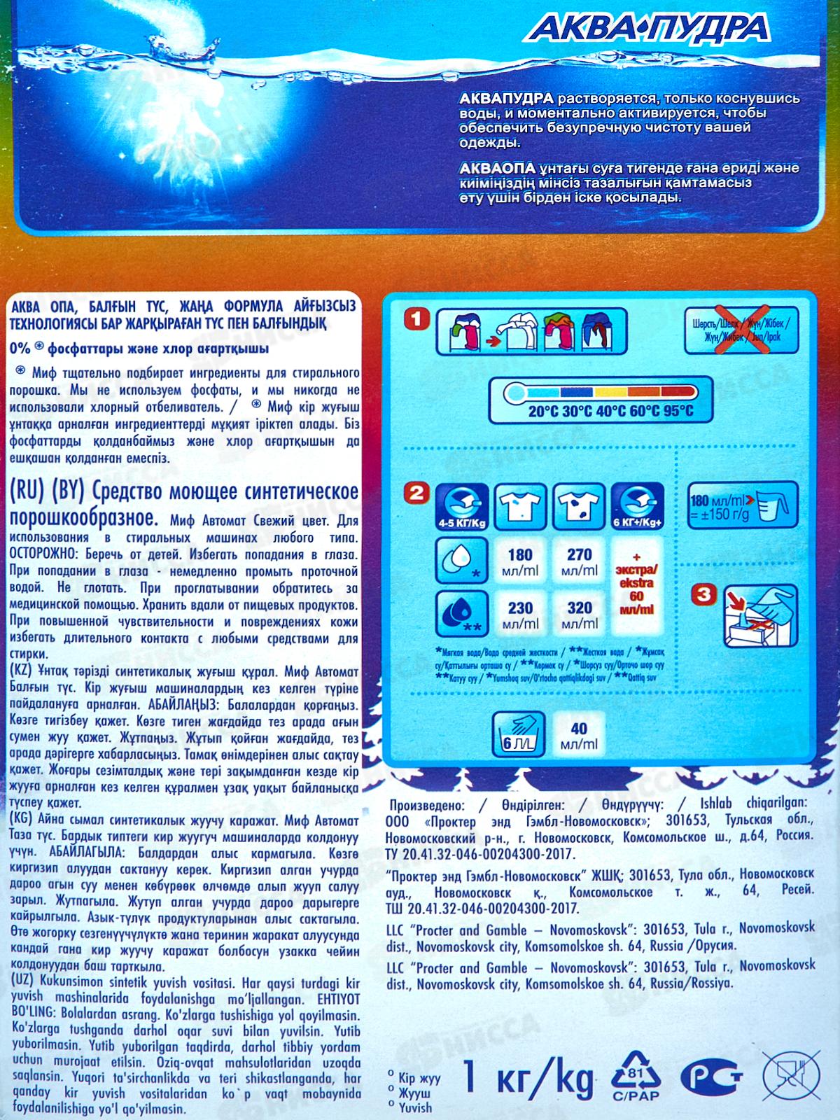 Миф автомат 1кг стиральный порошок Свежий цвет *7