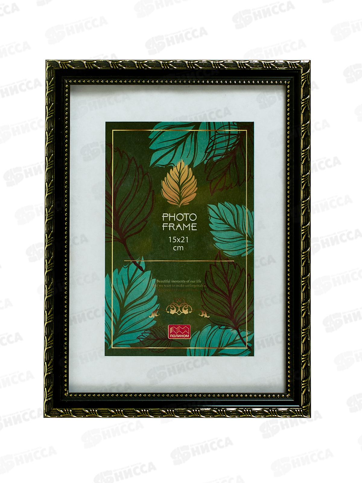 Код:581021; Фоторамка 15*21 ПОЛИНОМ пластик, Камышок,чер. золото, 106КЧ-РП1521*50