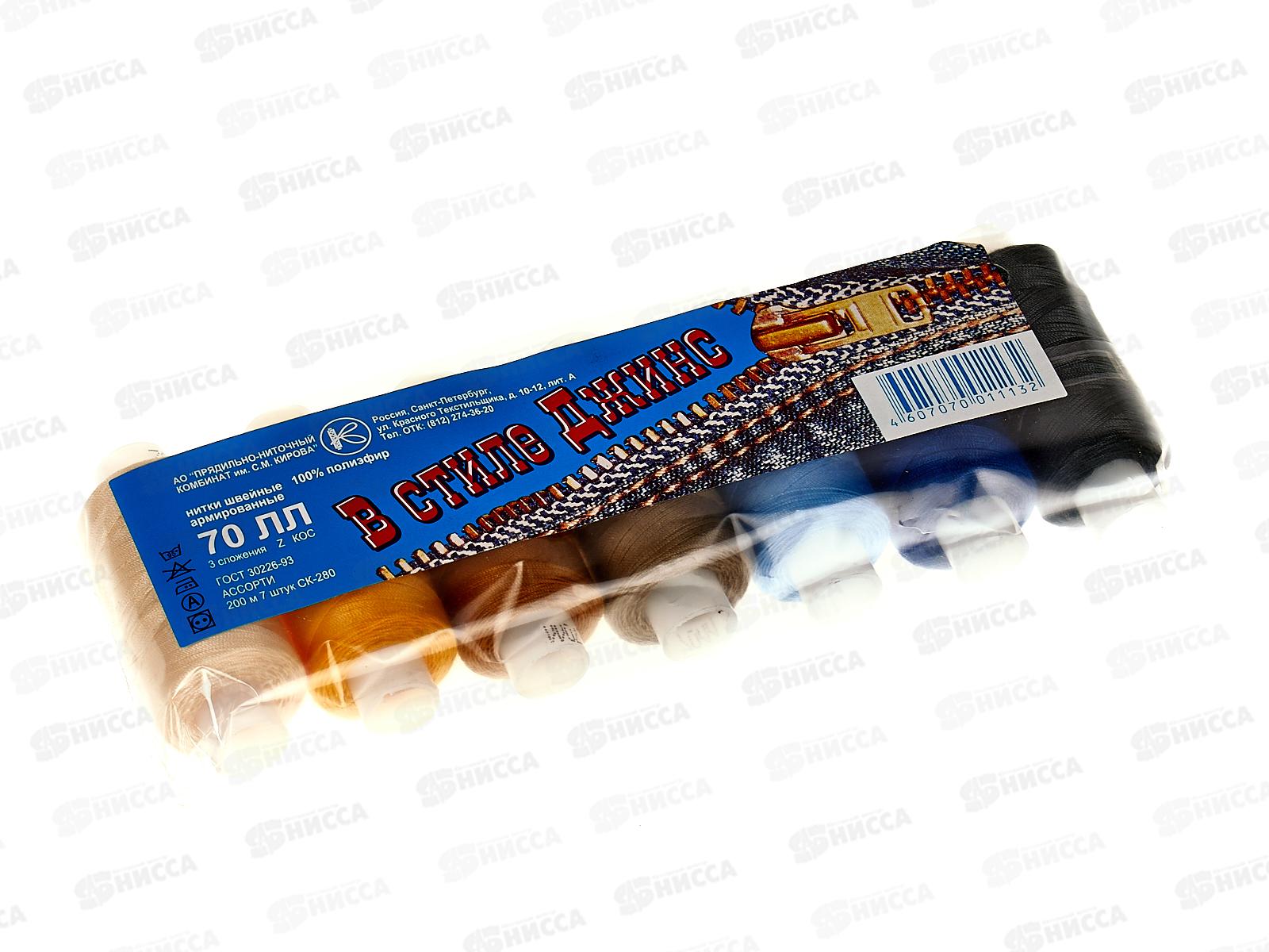 Код:443355; Нитки (армированные) 70 ЛЛ 200м "В стиле Джинс" ассорти 7шт