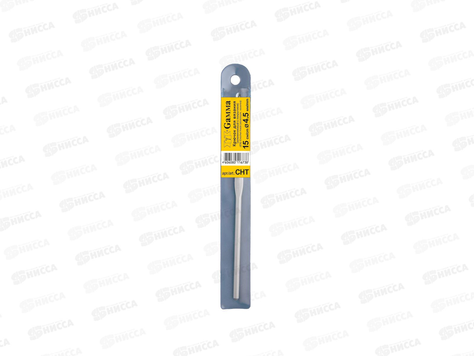 Код:471946; Крючок для вязания "Gamma" СНТ алюминий d 4.5мм 15см в чехле с покрытием *10