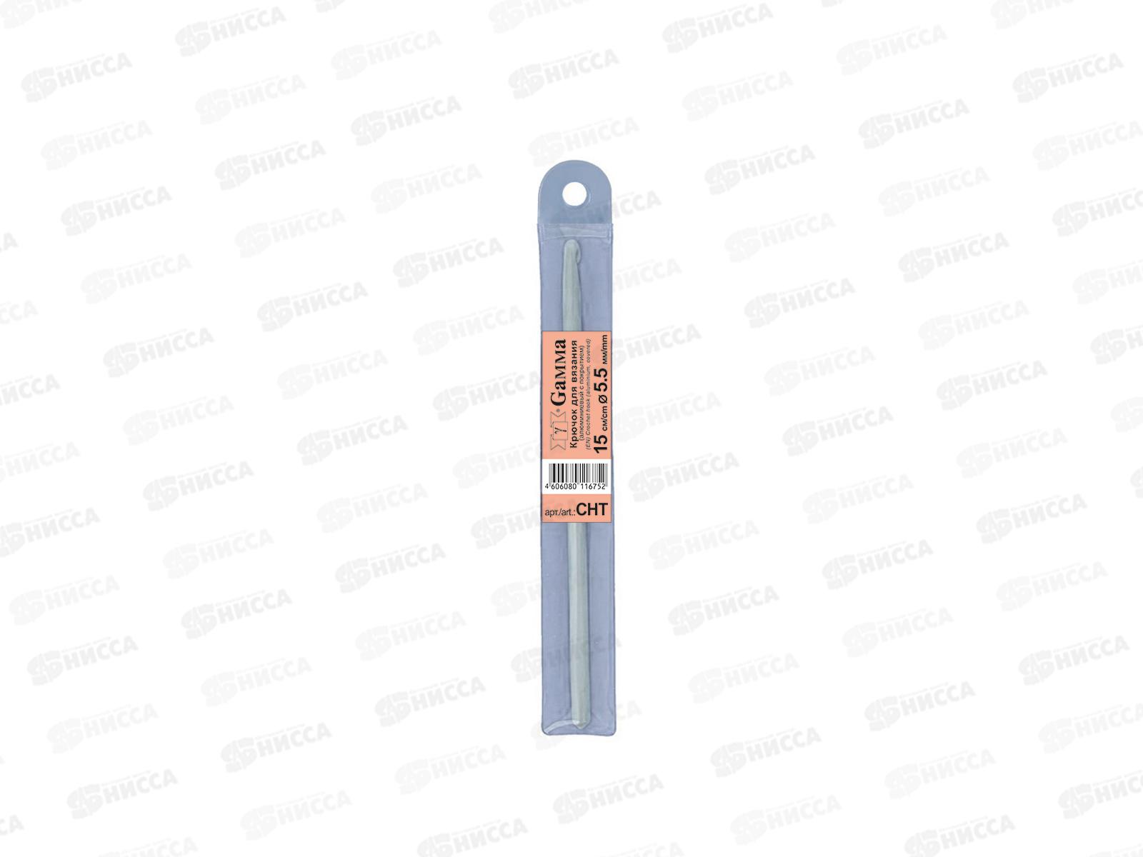 Код:471948; Крючок для вязания "Gamma" СНТ алюминий d 5.5мм 15см в чехле с покрытием */10