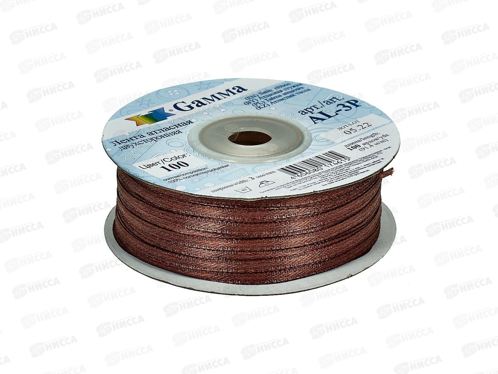 Код:491498; Лента атласная "Gamma" 3мм (1/8") №100 т.коричневый, двухстор. 91,4м