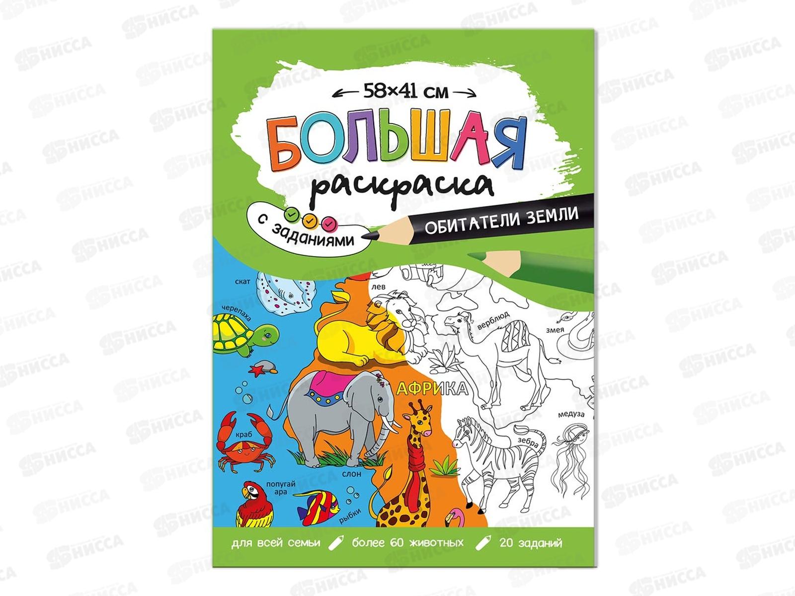 Код:478420; Раскраска ГД большая с заданиями. Обитатели Земли 58х41см, 22873