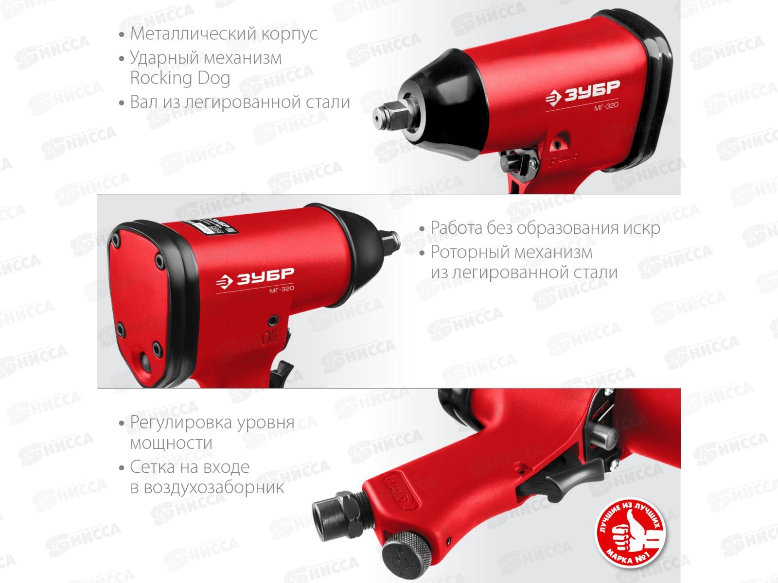 Гайковерт ударный пневматический Зубр МГ-320 1/2 , 320Нм 64285