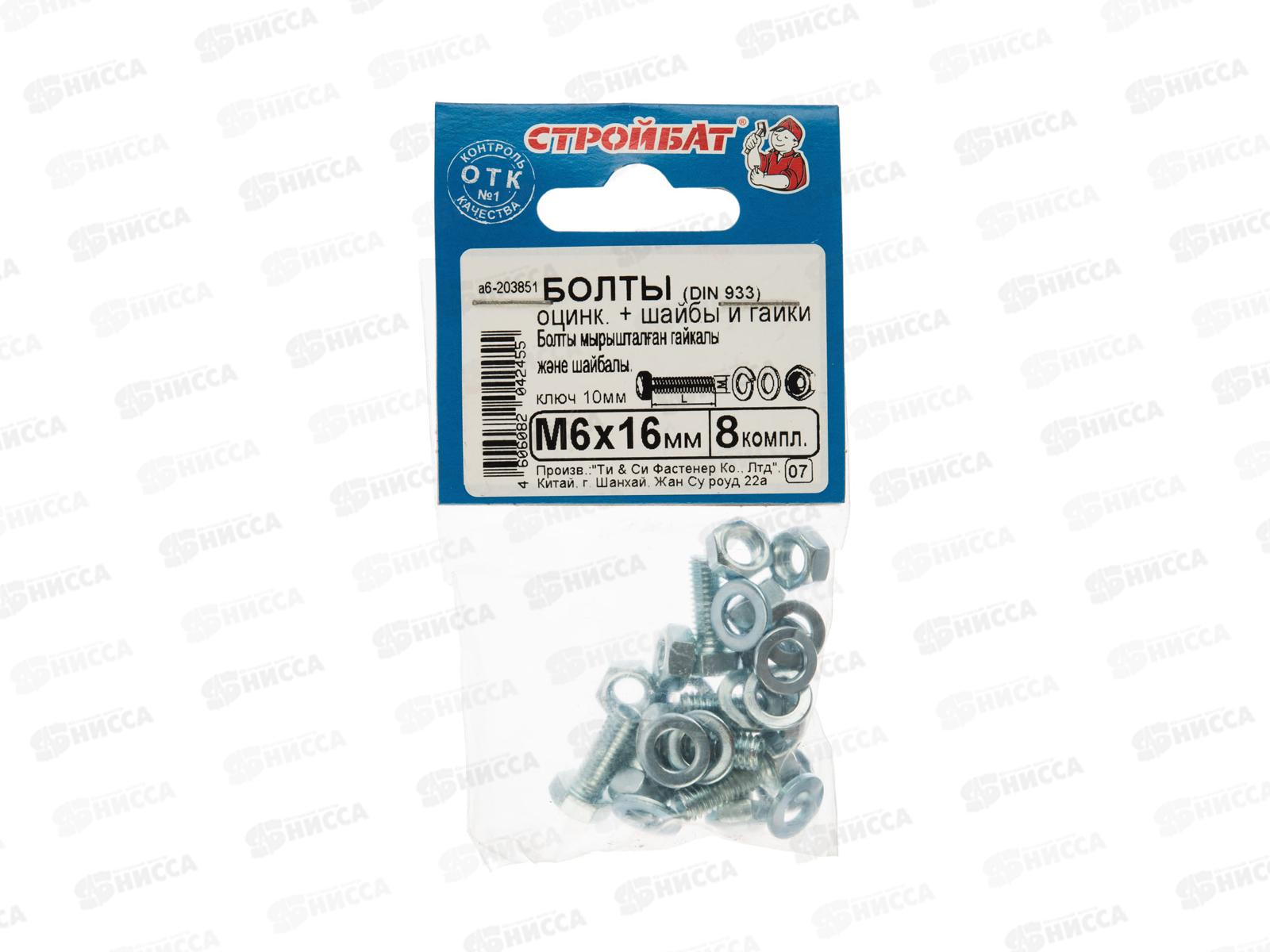 Код:442425; Болты DIN 933 М 6x16 с гайками и шайбами (белый цинк 8шт) *40