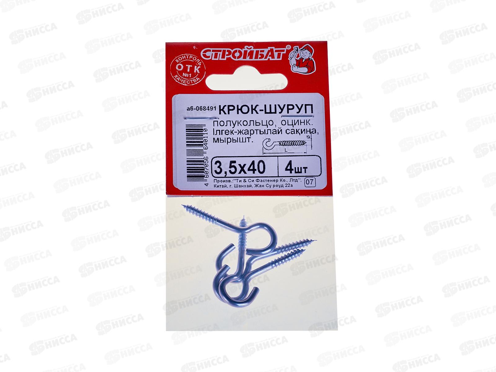 Код:454930; Шуруп-полукольцо 3,5x40 (белый цинк 4шт) *60
